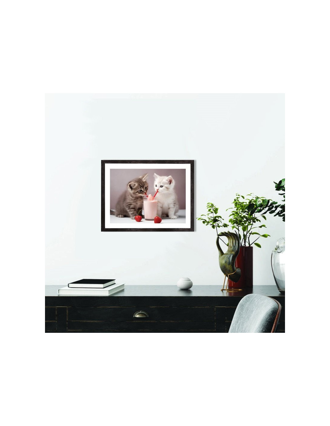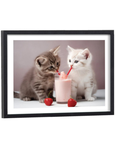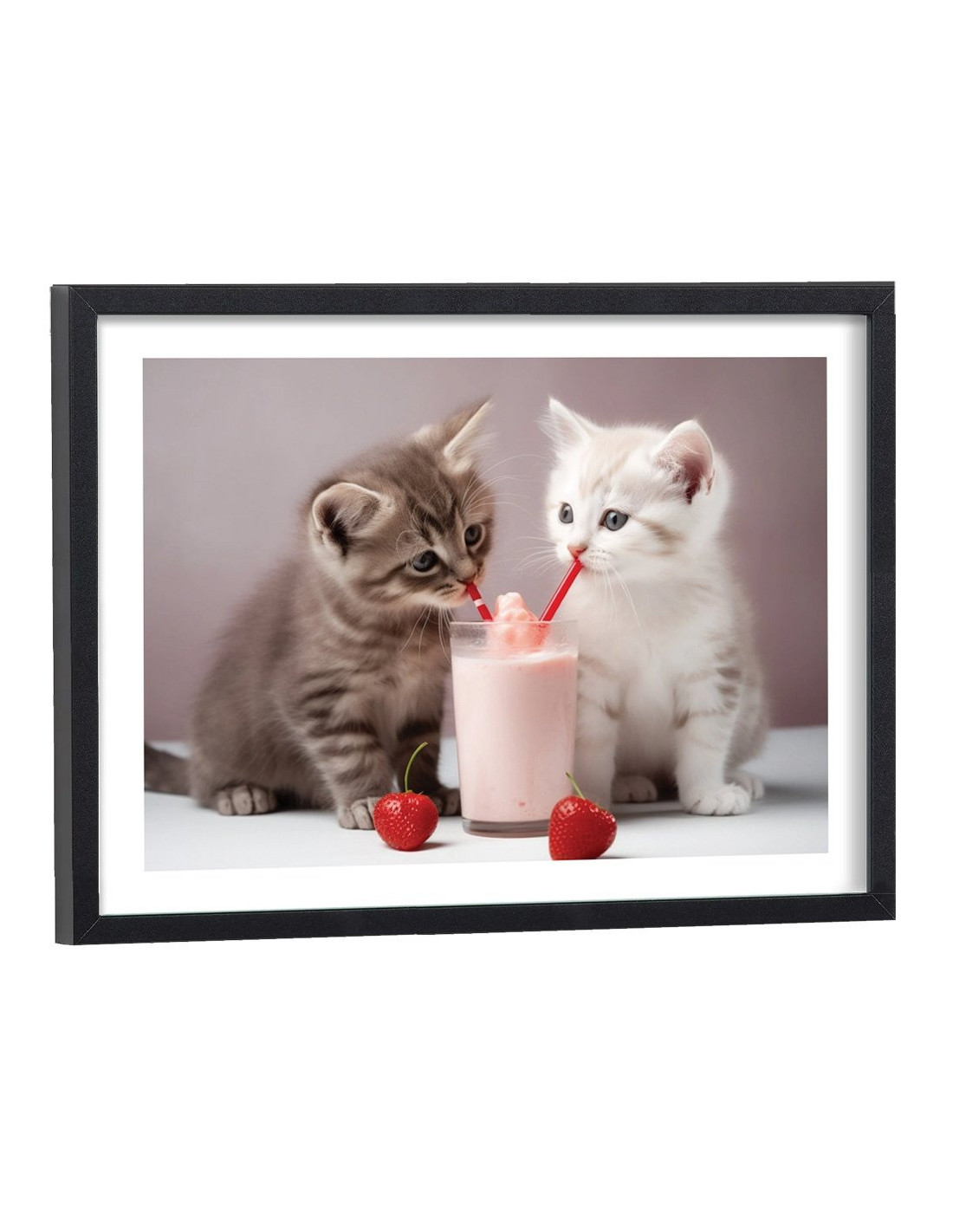 Tableau mural décoration de deux chatons mignons en train de boire un milkshake à la paille.