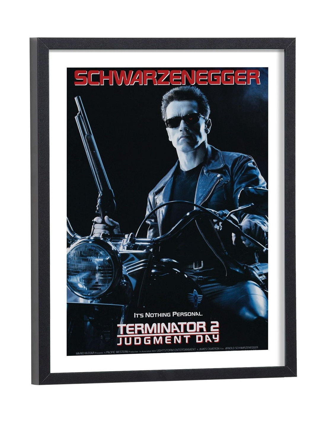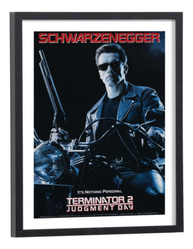 Affiche du film "Terminator 2". Affiche encadrée avec cadre en bois noir.