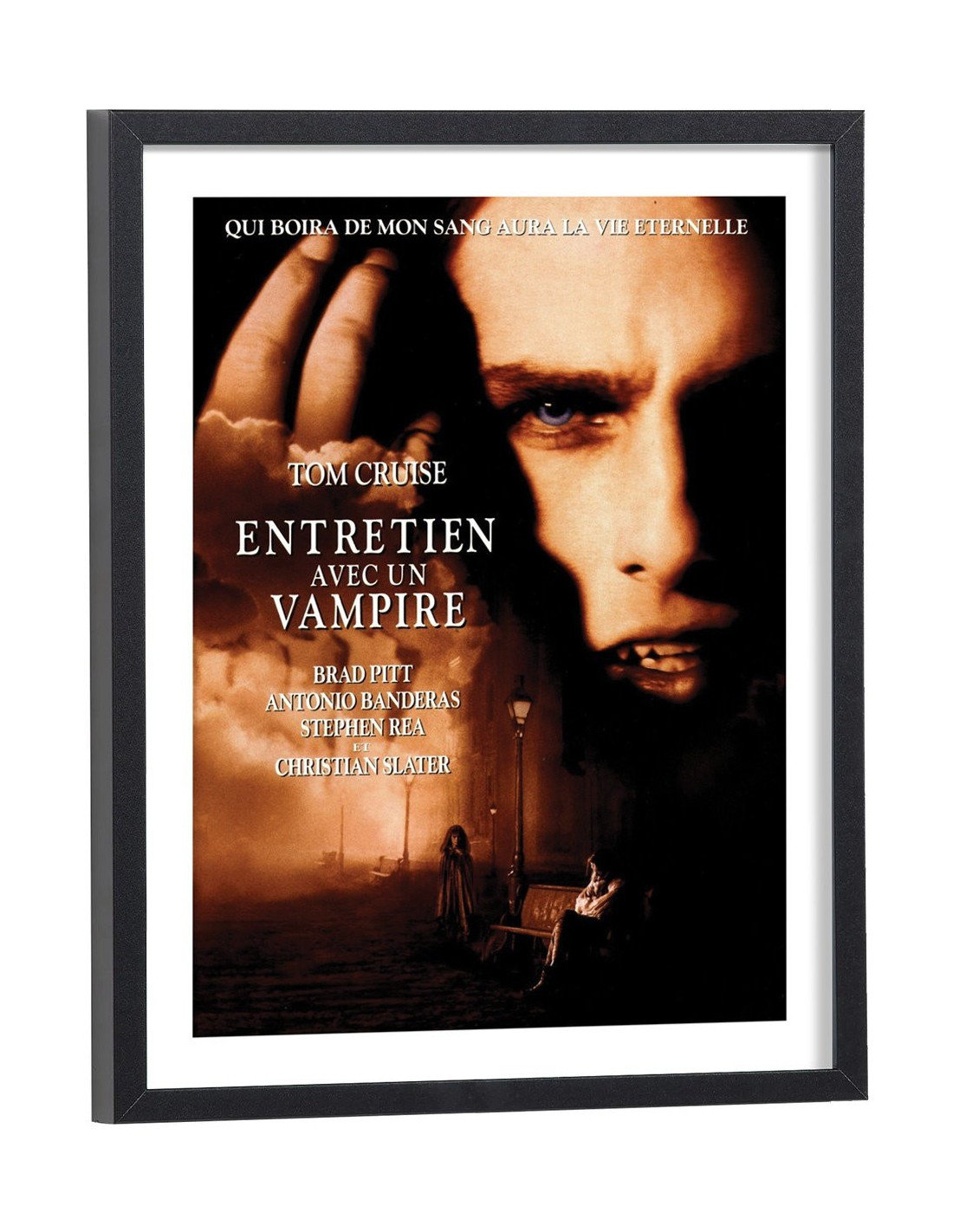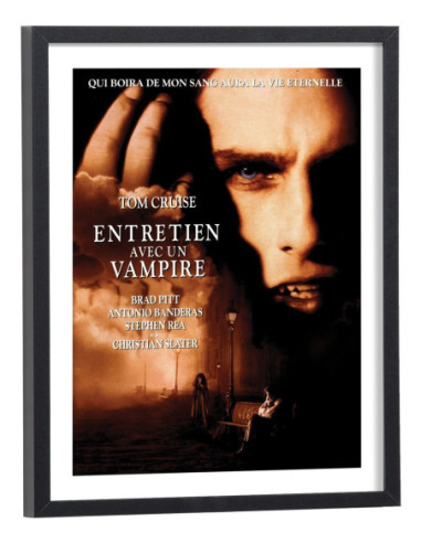 Affiche du film "Entretien avec un vampire". Affiche encadrée avec cadre en bois noir.