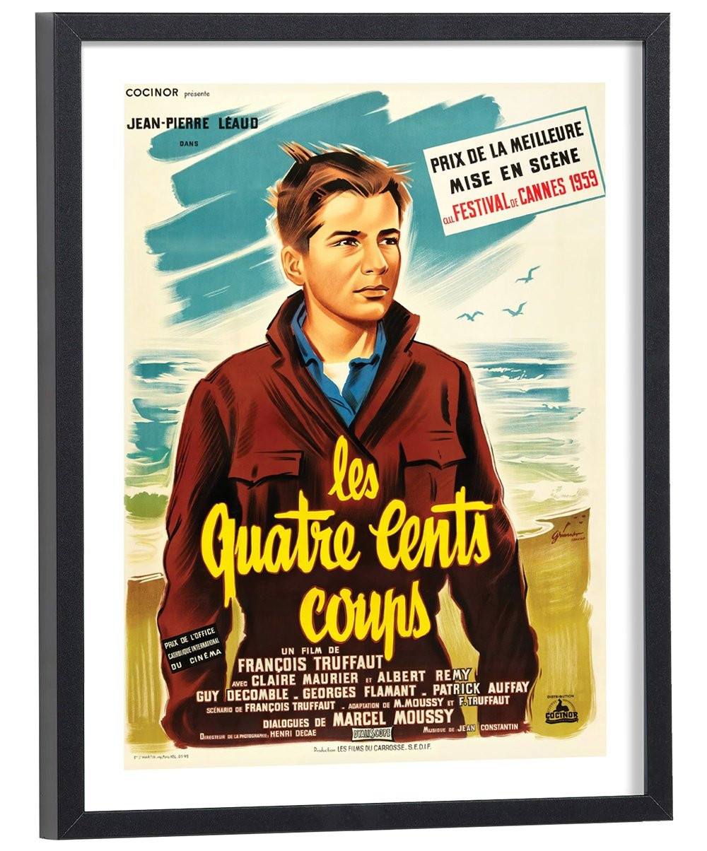 Affiche du film "Les quatre cents coups". Affiche encadrée avec cadre en bois noir.