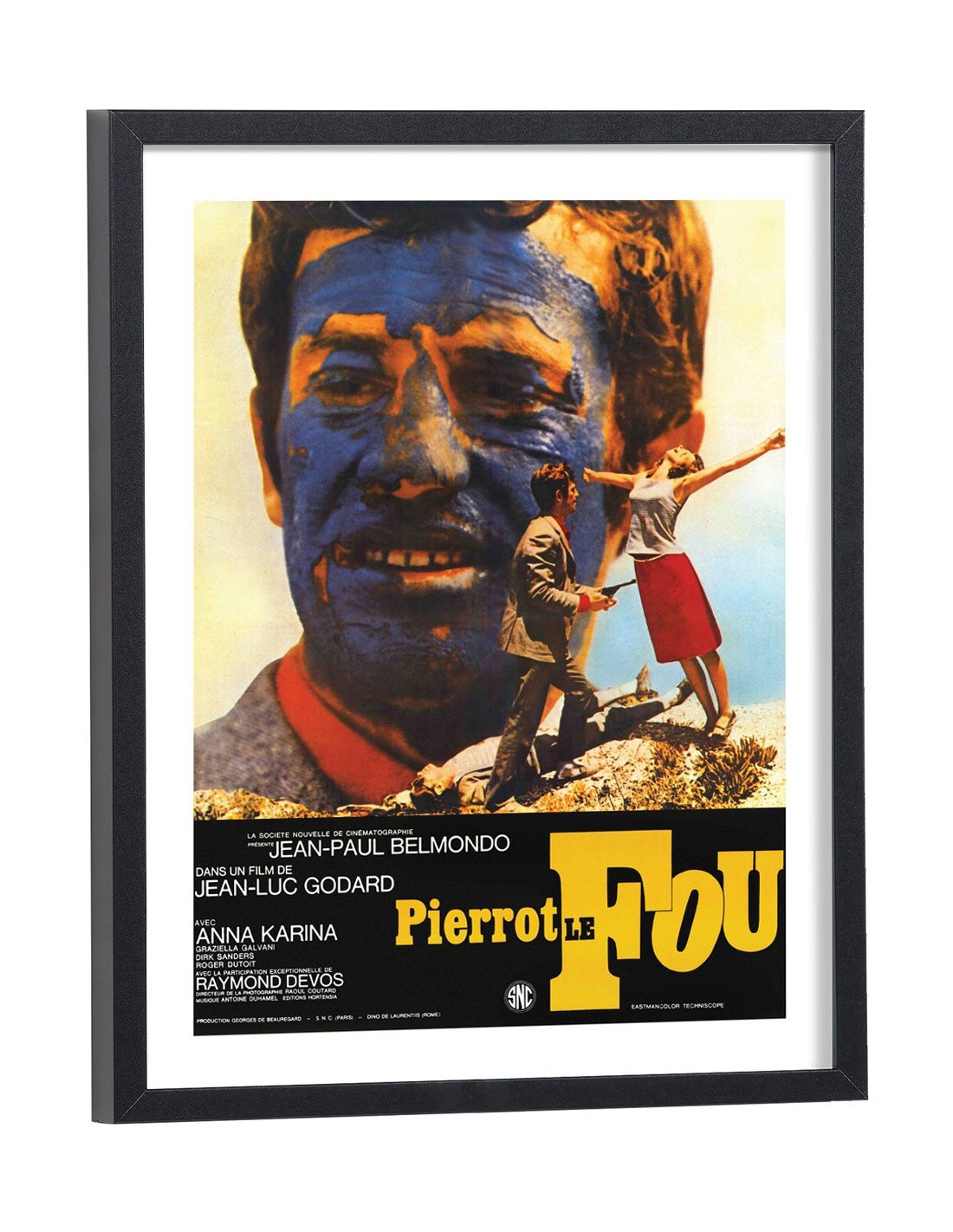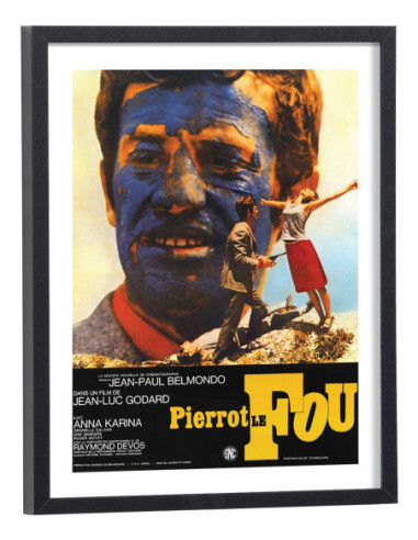 Affiche du film "Pierrot le fou". Affiche encadrée avec cadre en bois noir.