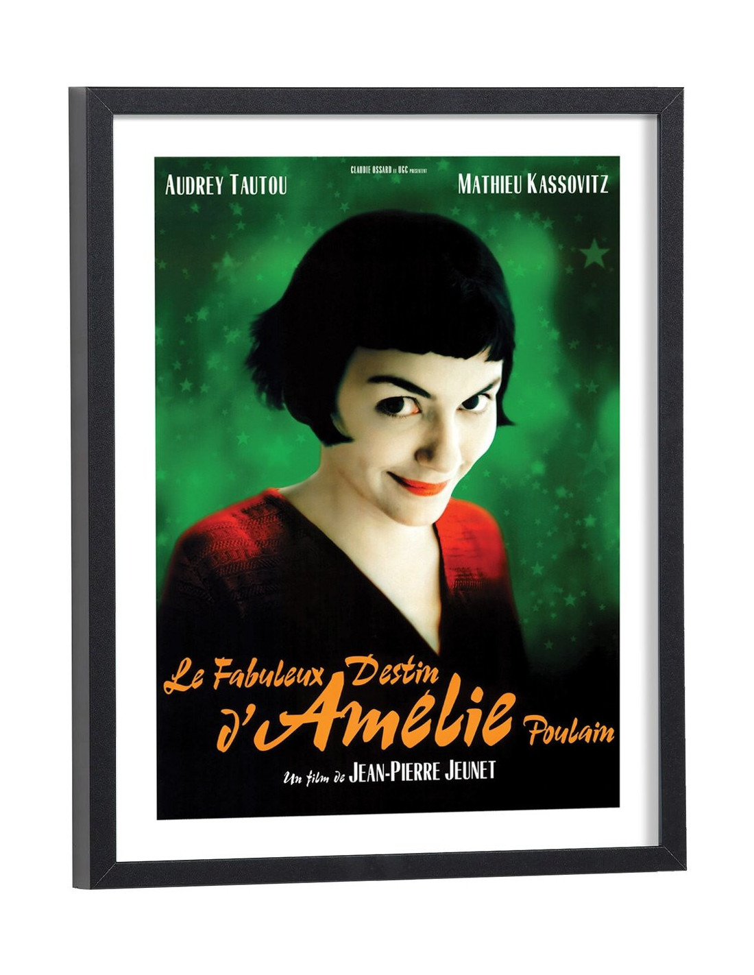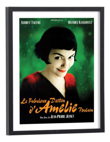 Affiche du film "Le fabuleux destin d'Amélie Poulain" sorti au cinéma en 2001. Affiche encadrée avec cadre en bois noir.