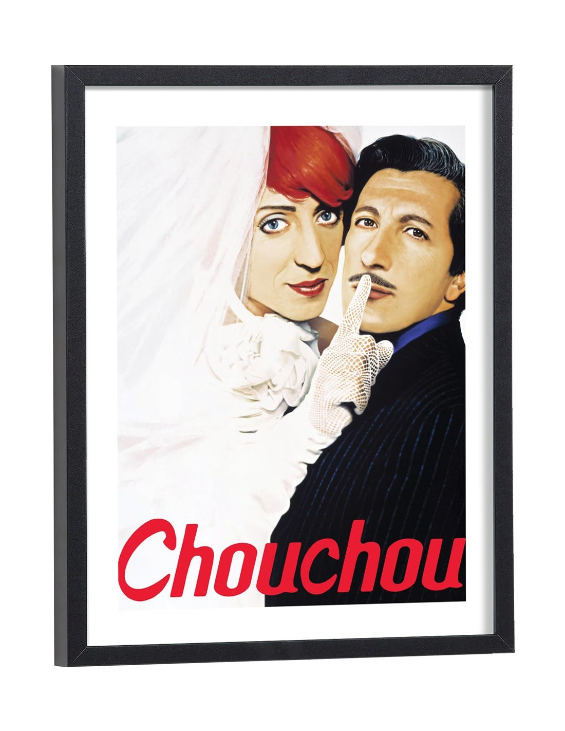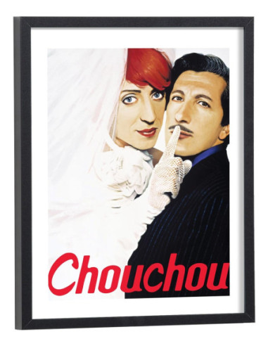 Affiche du film "Chouchou" avec Gad Elmaleh sorti au cinéma en 2003. Affiche encadrée avec cadre en bois noir.