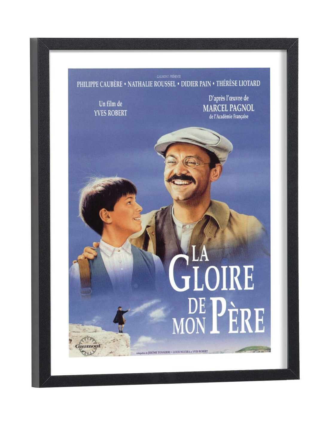 Affiche du film "La gloire de mon père" sorti au cinéma en 1990. Affiche encadrée avec cadre en bois noir.