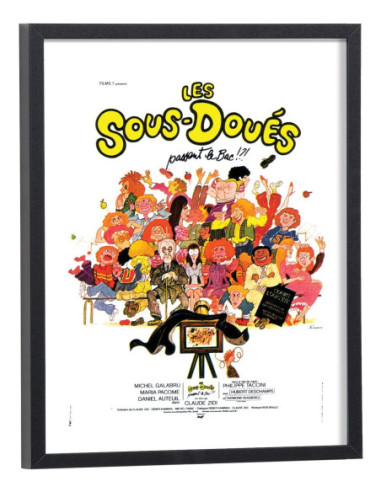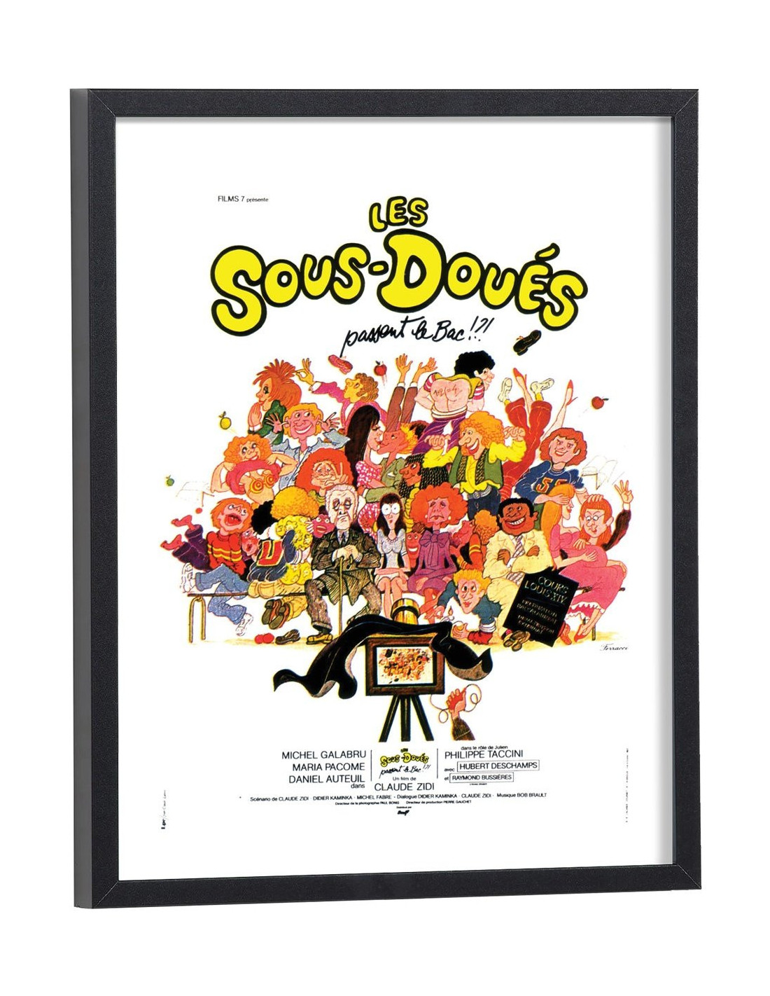 Affiche du film "Les sous-doués" sorti au cinéma en 1980. Affiche encadrée avec cadre en bois noir.