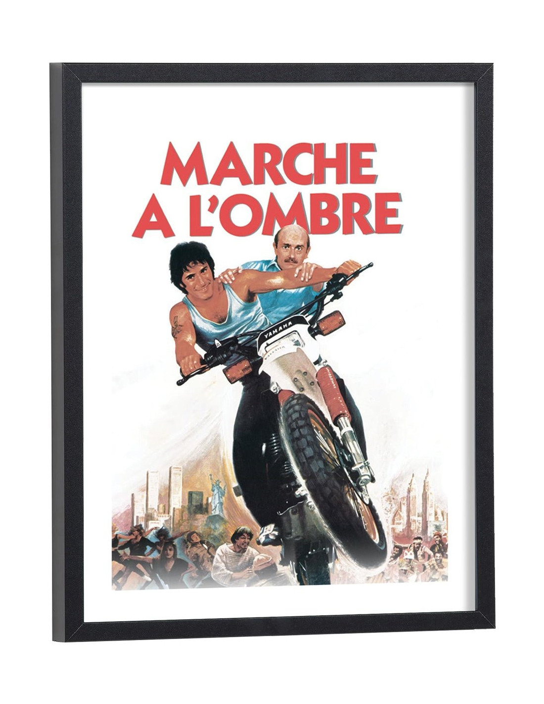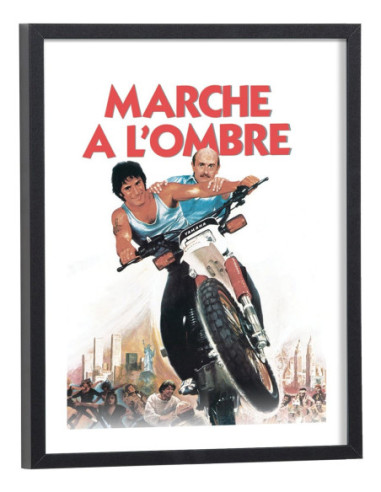 Affiche du film "Marche à l'ombre" avec Michel Blanc et Gérard Lanvin sorti au cinéma en 1984. Affiche encadrée avec cadre en bois noir.