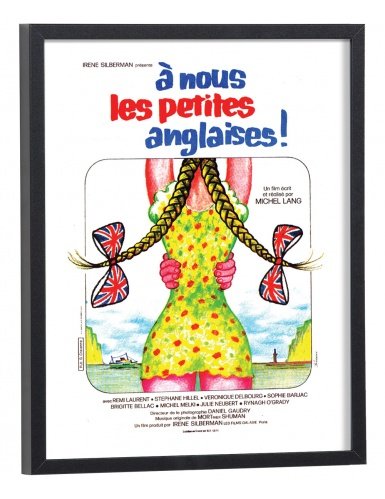 Affiche du film "A nous les petites anglaises" sorti au cinéma en 1976. Affiche encadrée avec cadre en bois noir.
