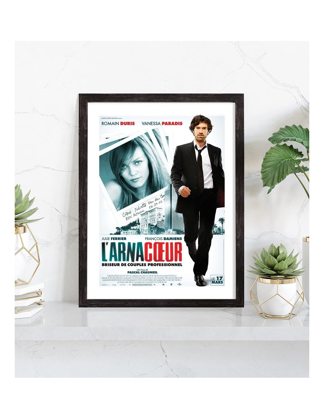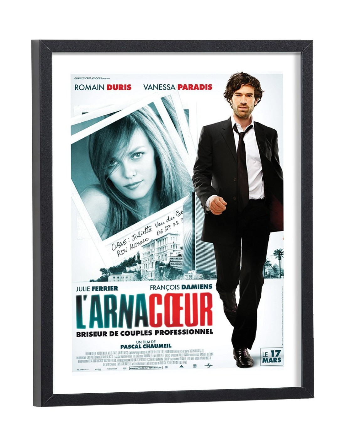 Affiche du film "L'arnacoeur" avec Vanessa Paradis et Romain Duris sorti au cinéma en 2010. Affiche encadrée avec cadre en bois noir.