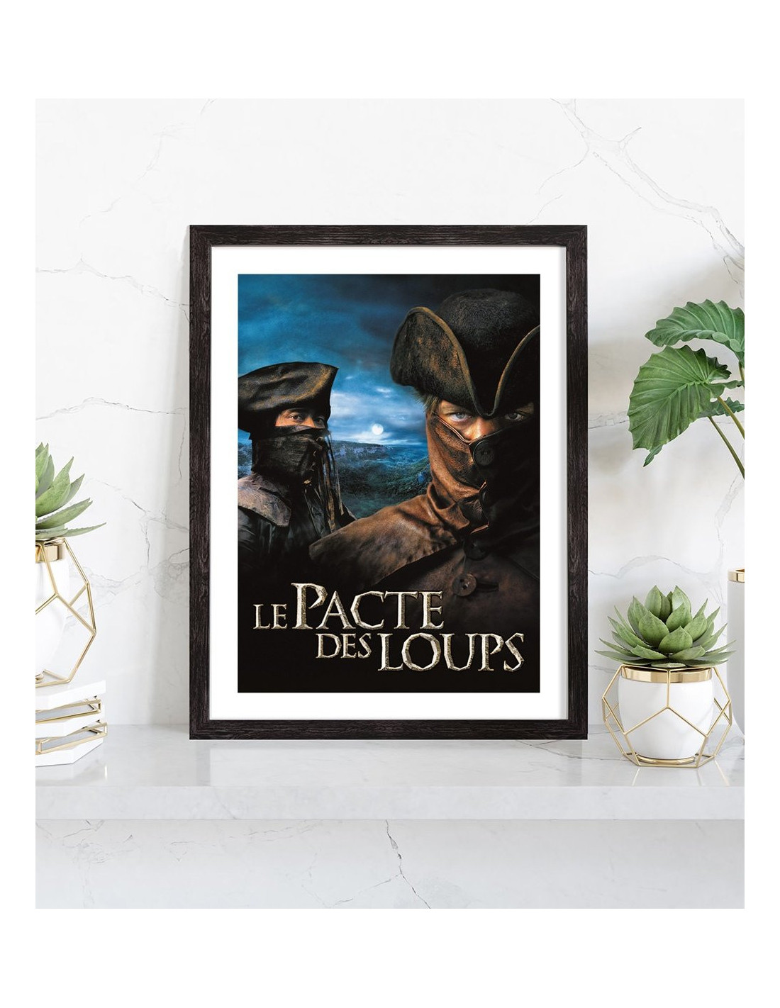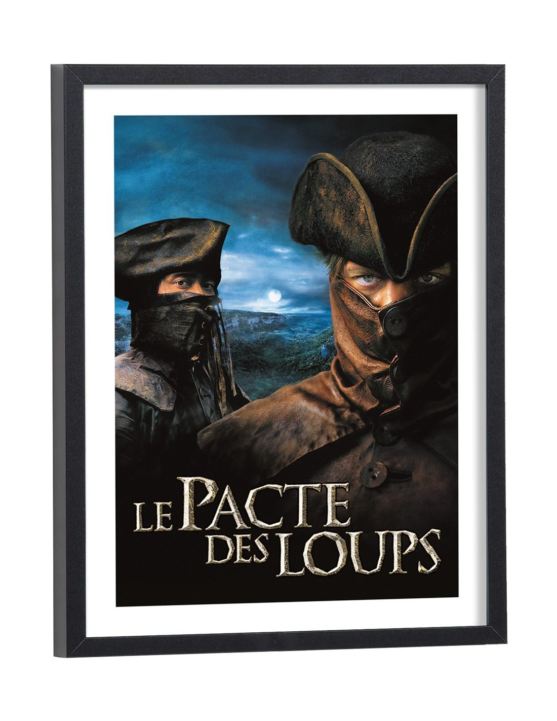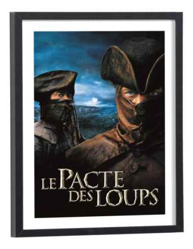 Affiche du film "Le pacte des loups" sorti au cinéma en 2001. Affiche encadrée avec cadre en bois noir.