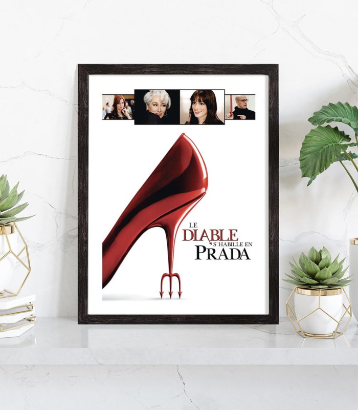 Affiche du film "Le diable s'habille en Prada" sorti au cinéma en 2006. Affiche encadrée avec cadre en bois noir.