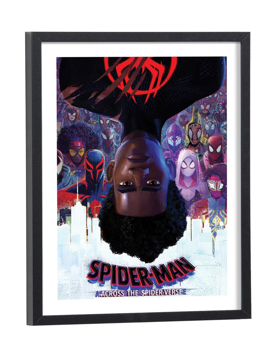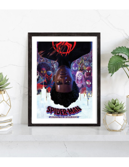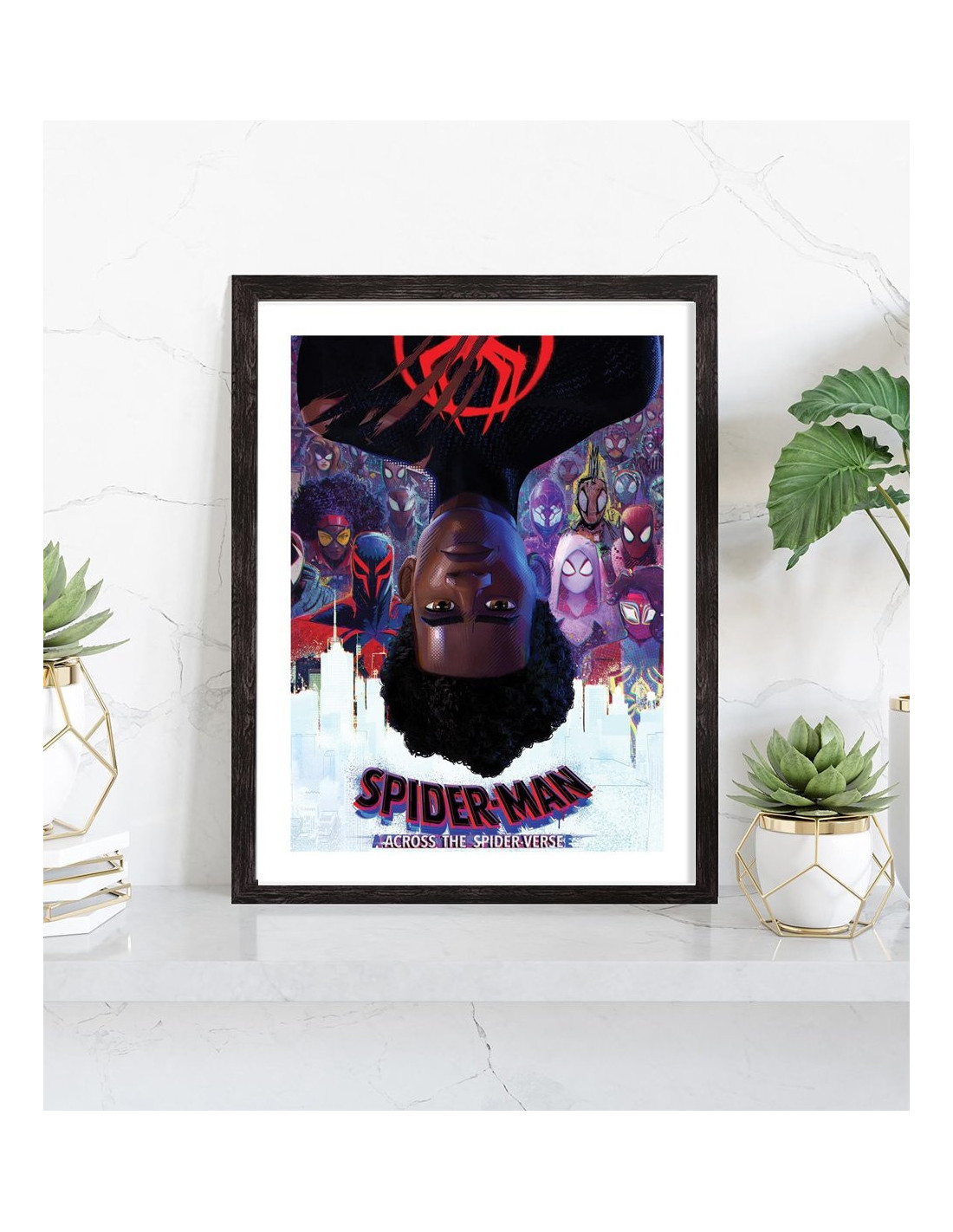 Affiche du film "Spider-Man : Across the Spider-Verse" sorti au cinéma en 2023. Affiche encadrée avec cadre en bois noir.