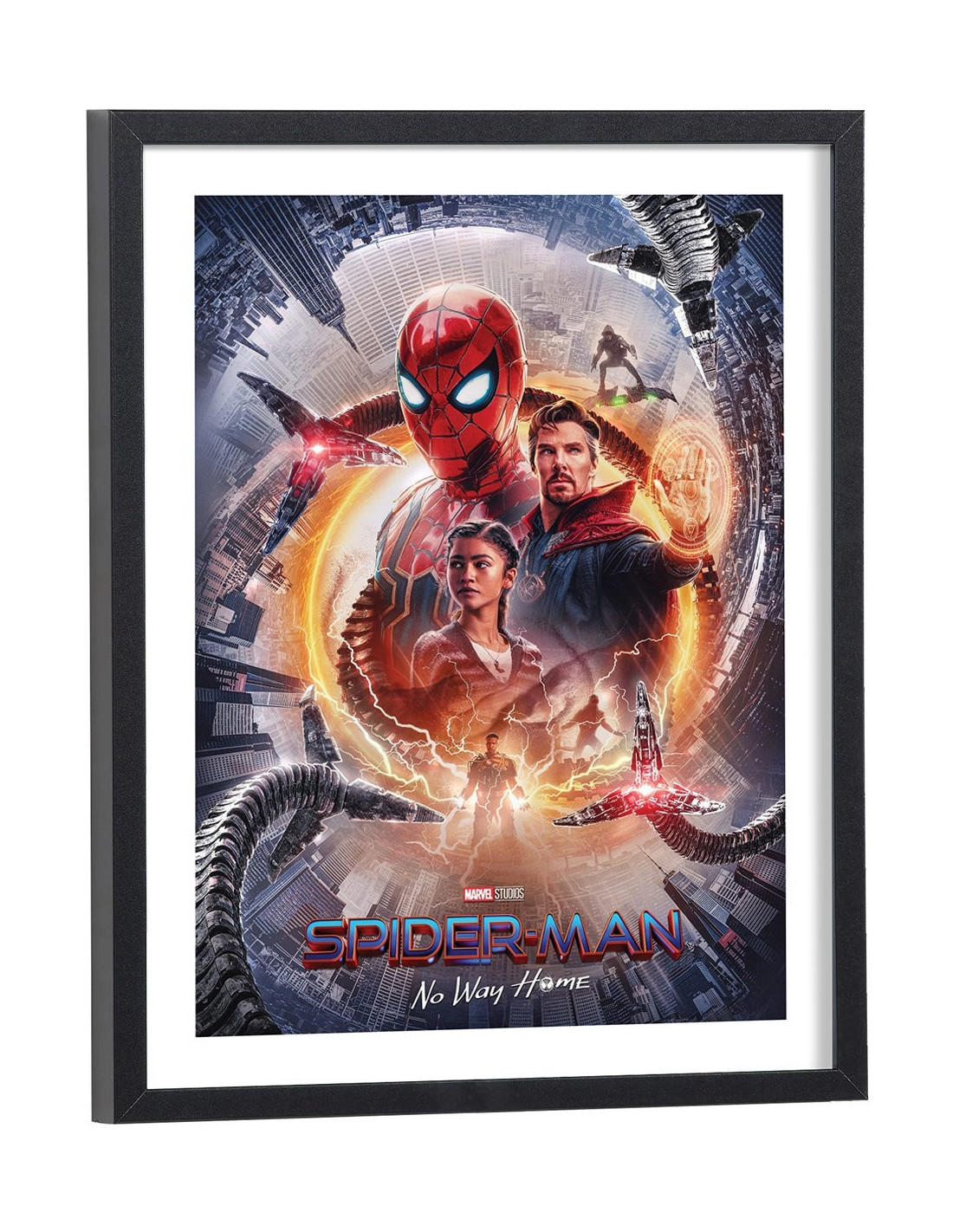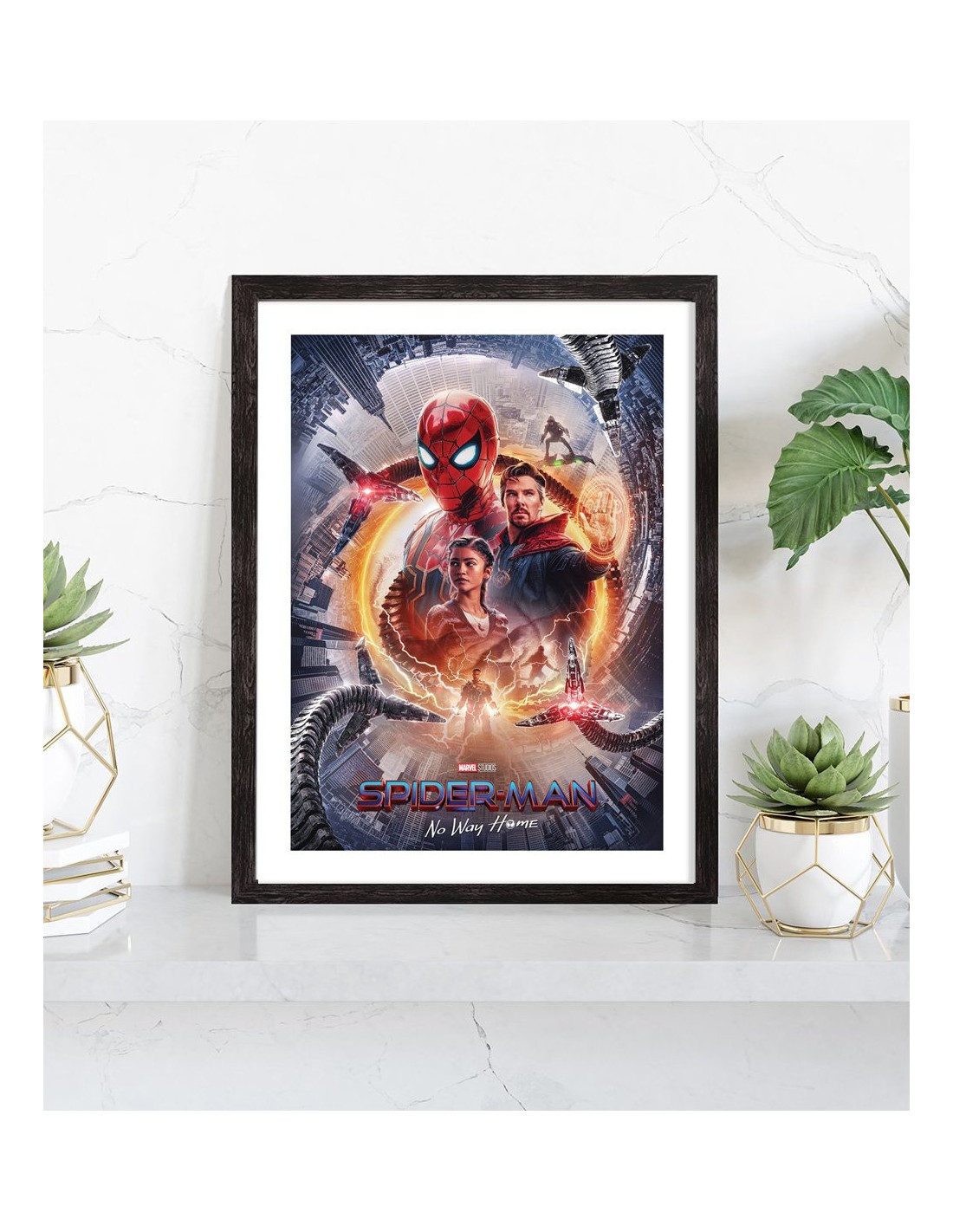 Affiche du film "Spider-Man : No Way Home" sorti au cinéma en 2021. Affiche encadrée avec cadre en bois noir.