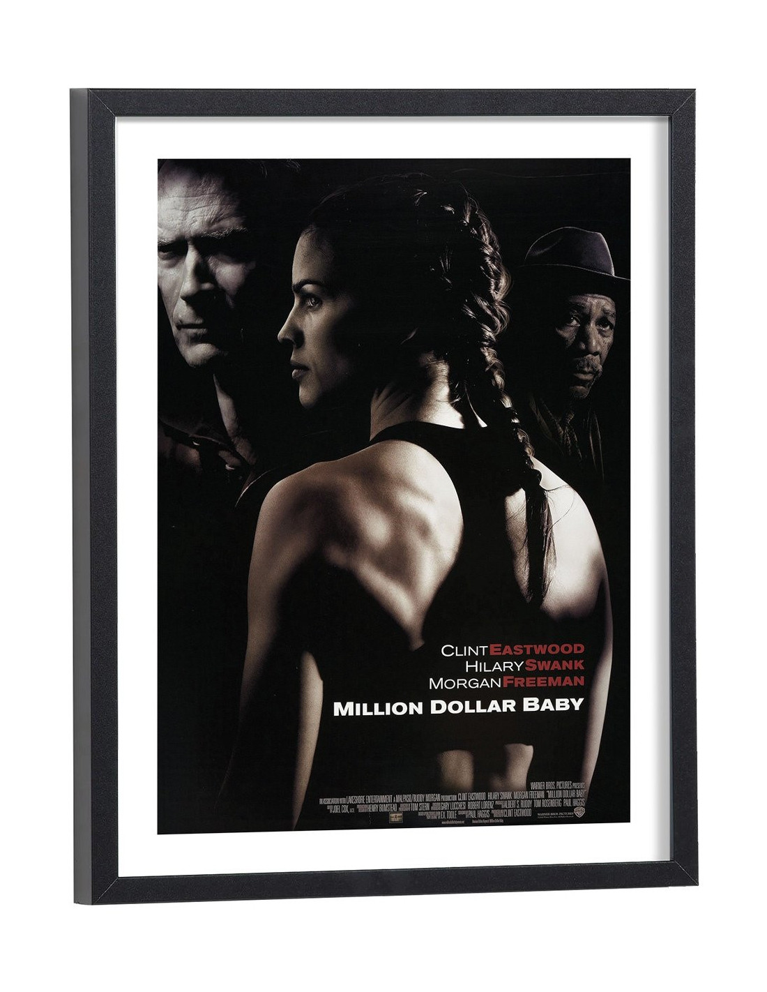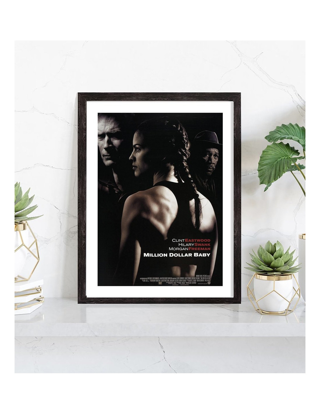Affiche du film "Million Dollar Baby" de Clint Eastwood sorti au cinéma en 2004. Affiche encadrée avec cadre en bois noir.