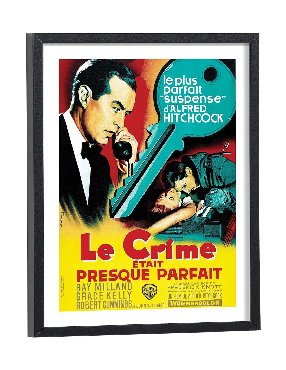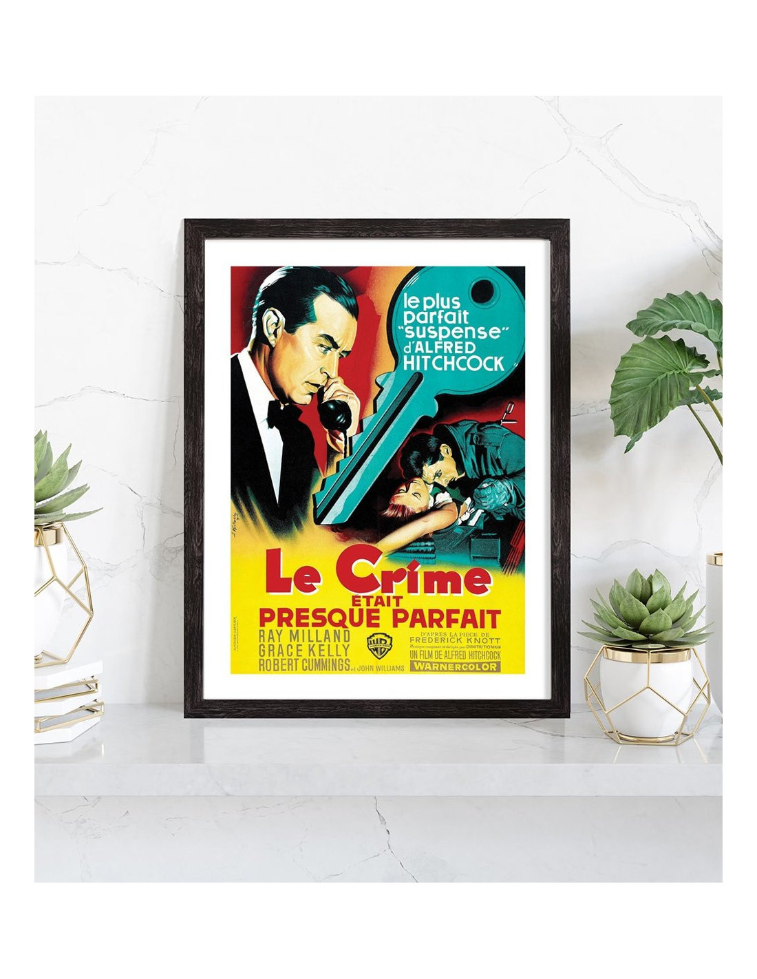 Affiche du film "Le crime était presque parfait" d'Alfred Hitchcock sorti au cinéma en 1954. Affiche encadrée avec cadre en bois noir.