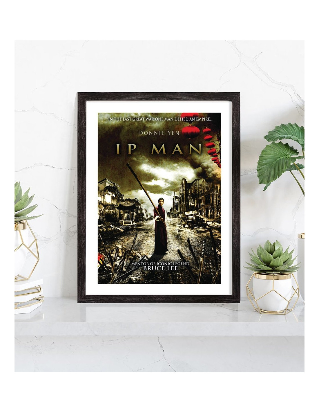 Affiche du film "Ip Man" sorti au cinéma en 2008. Affiche encadrée avec cadre en bois noir.