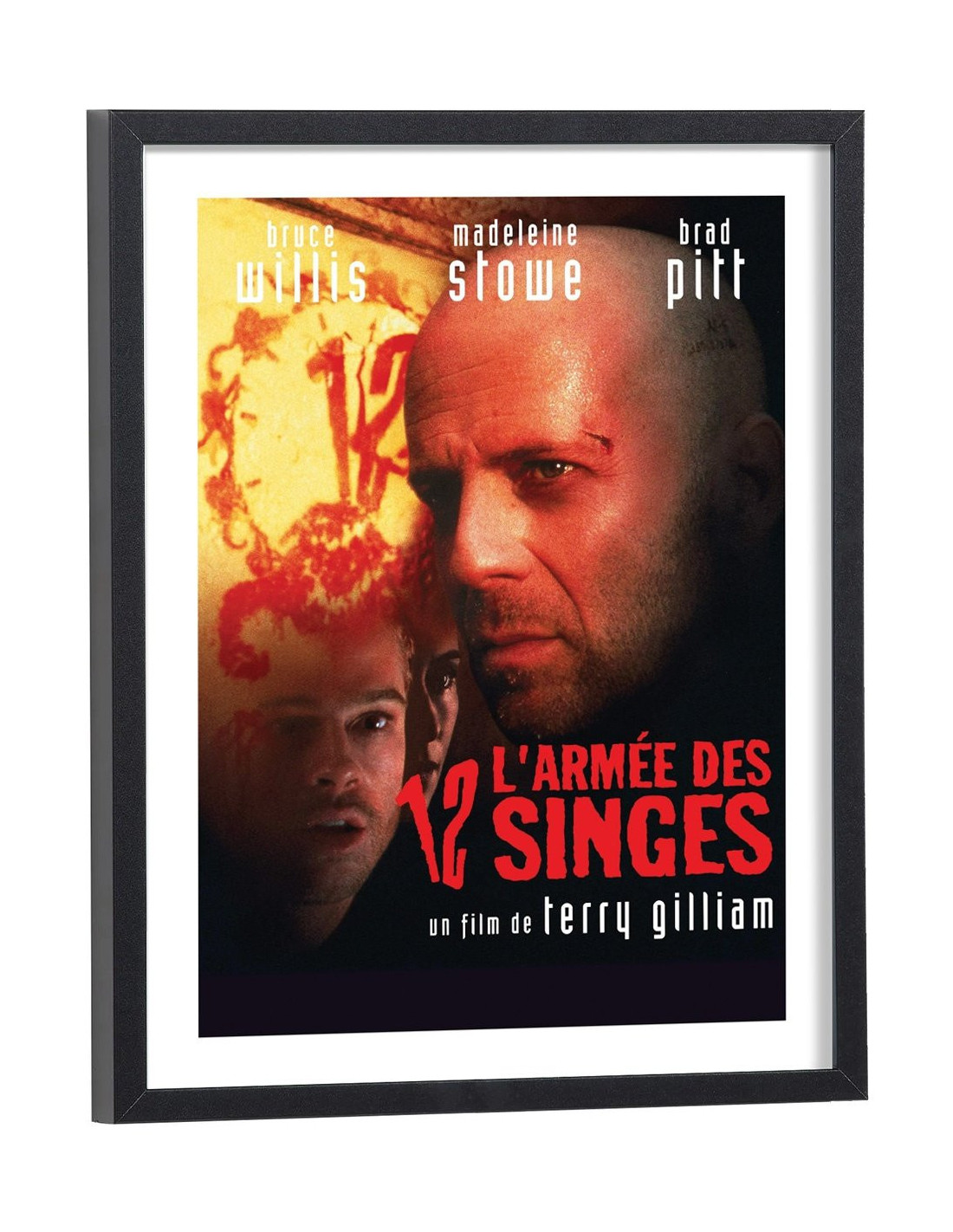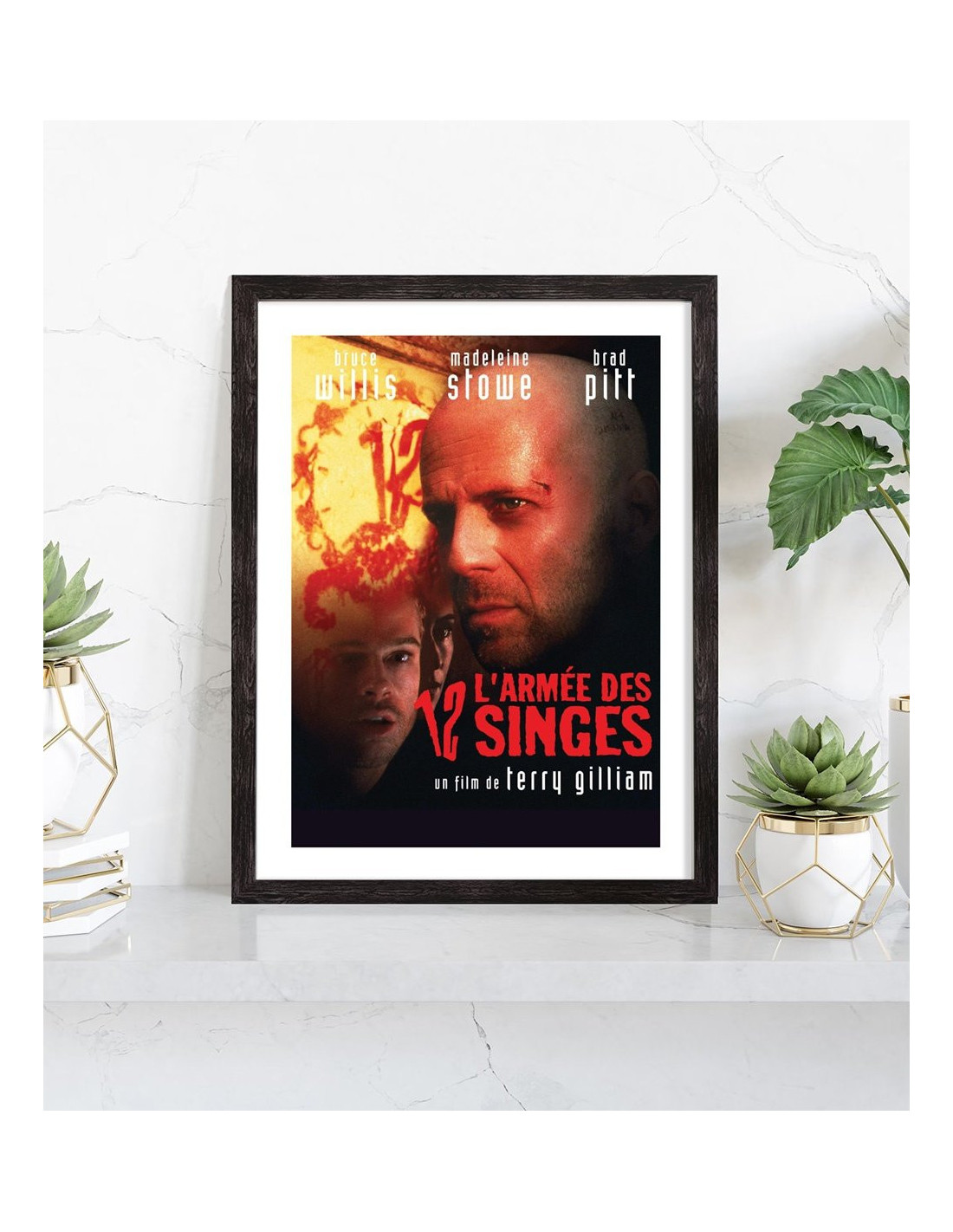Affiche du film "L'Armée des 12 singes" sorti au cinéma en 1995. Affiche encadrée avec cadre en bois noir.