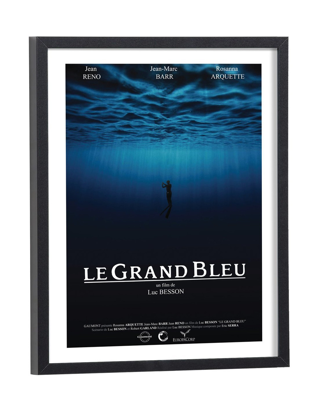 Affiche du film "Le grand bleu" sorti au cinéma en 1988. Affiche encadrée avec cadre en bois noir.
