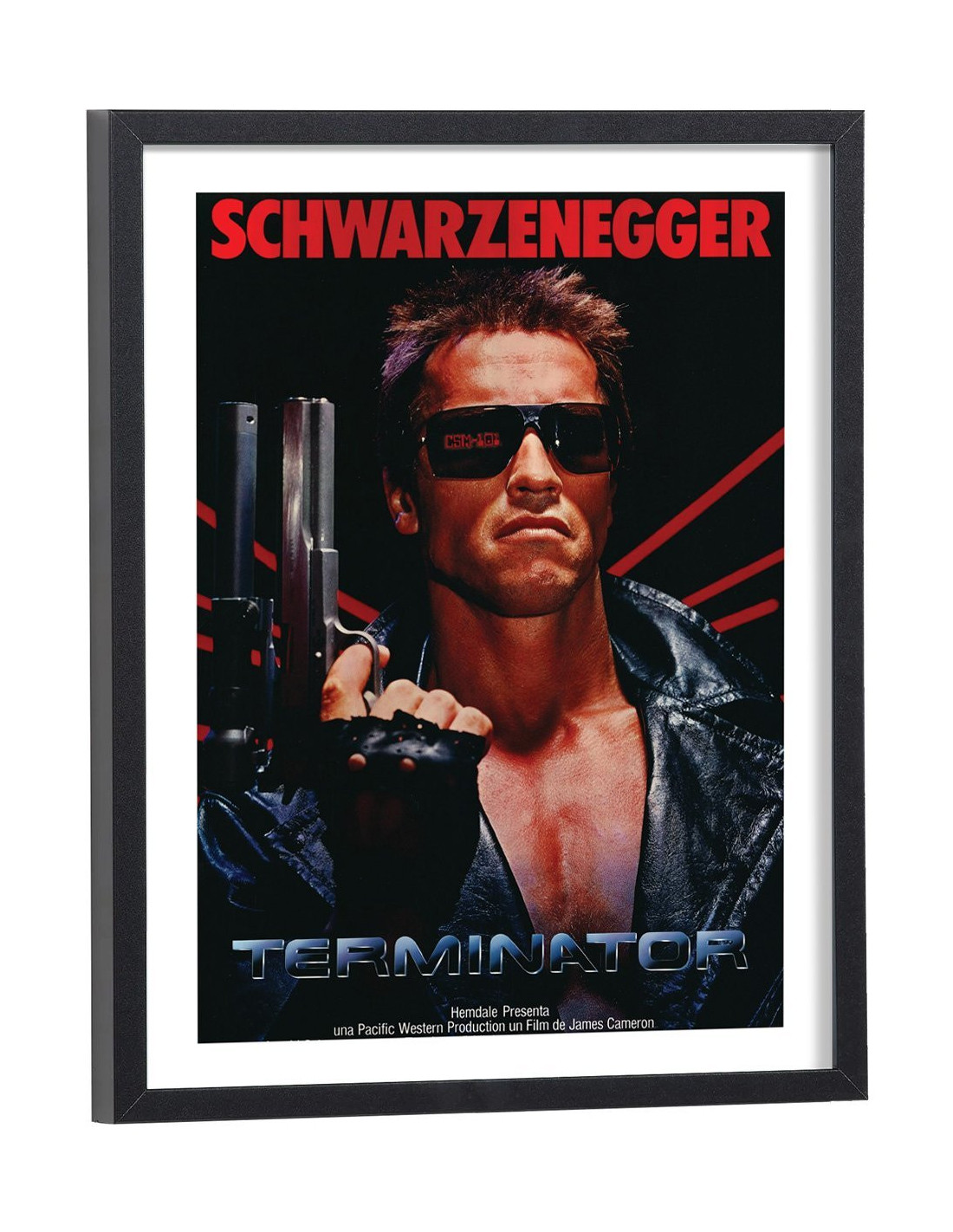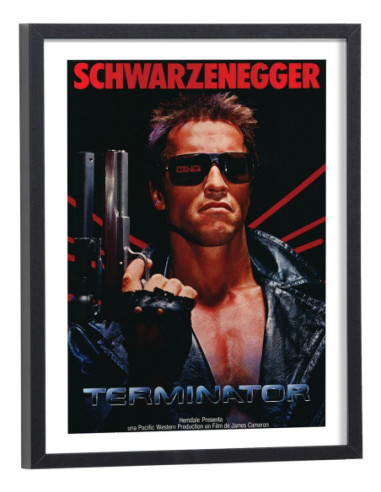 Affiche du film "Terminator" sorti au cinéma en 1984. Affiche encadrée avec cadre en bois noir.