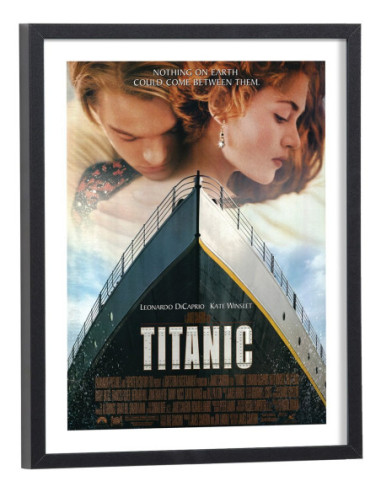 Affiche du film "Titanic" sorti au cinéma en 1997. Affiche encadrée avec cadre en bois noir.