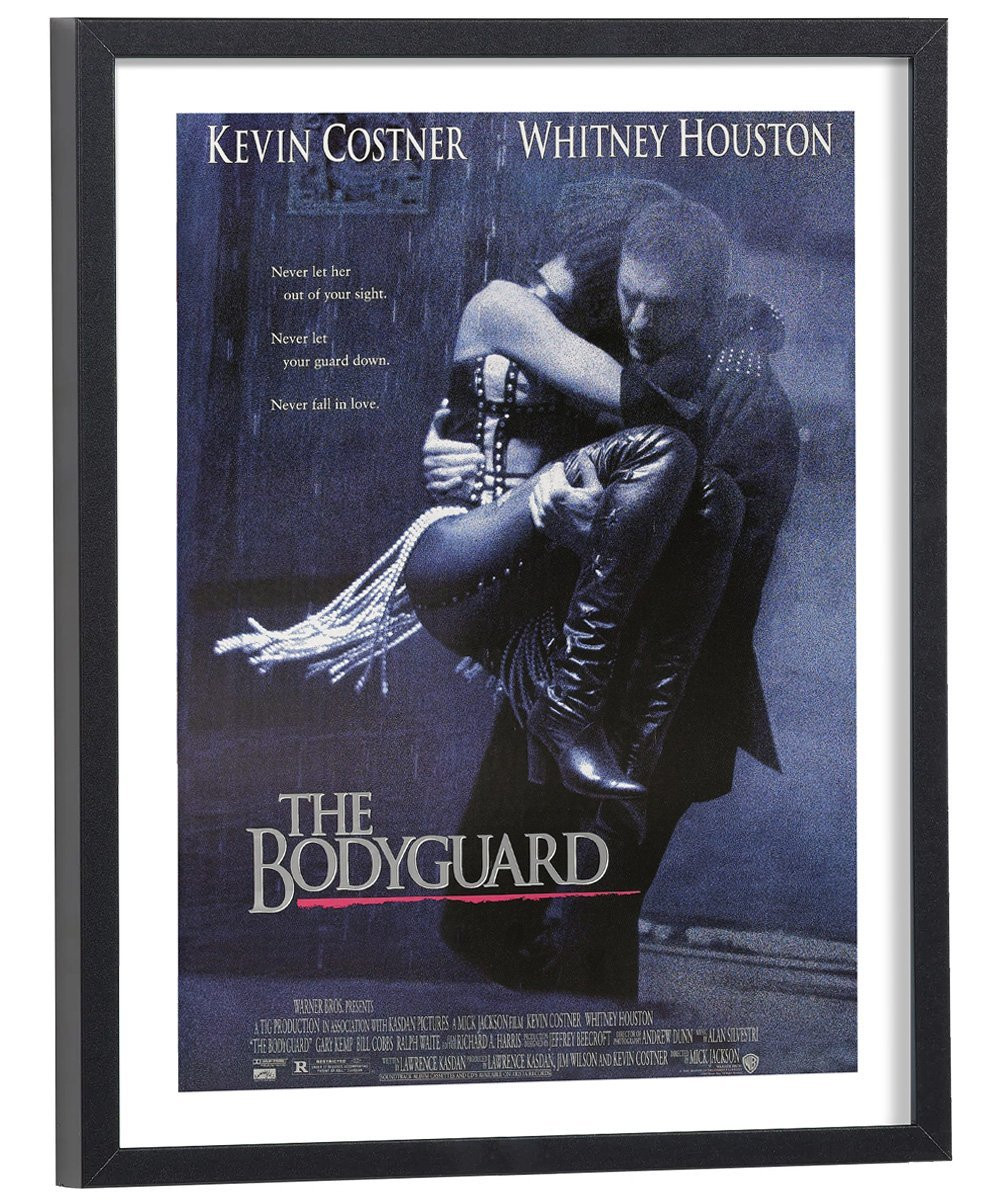 Affiche du film "Bodyguard" sorti au cinéma en 1992. Affiche encadrée avec cadre en bois noir.