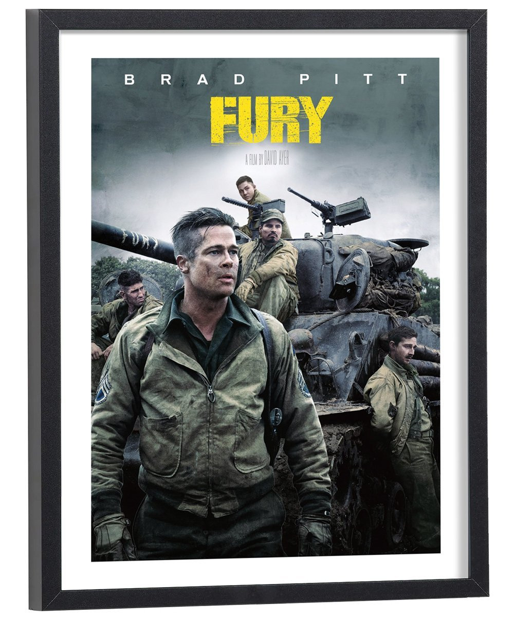 Affiche du film "Fury" sorti au cinéma en 2014. Affiche encadrée avec cadre en bois noir.