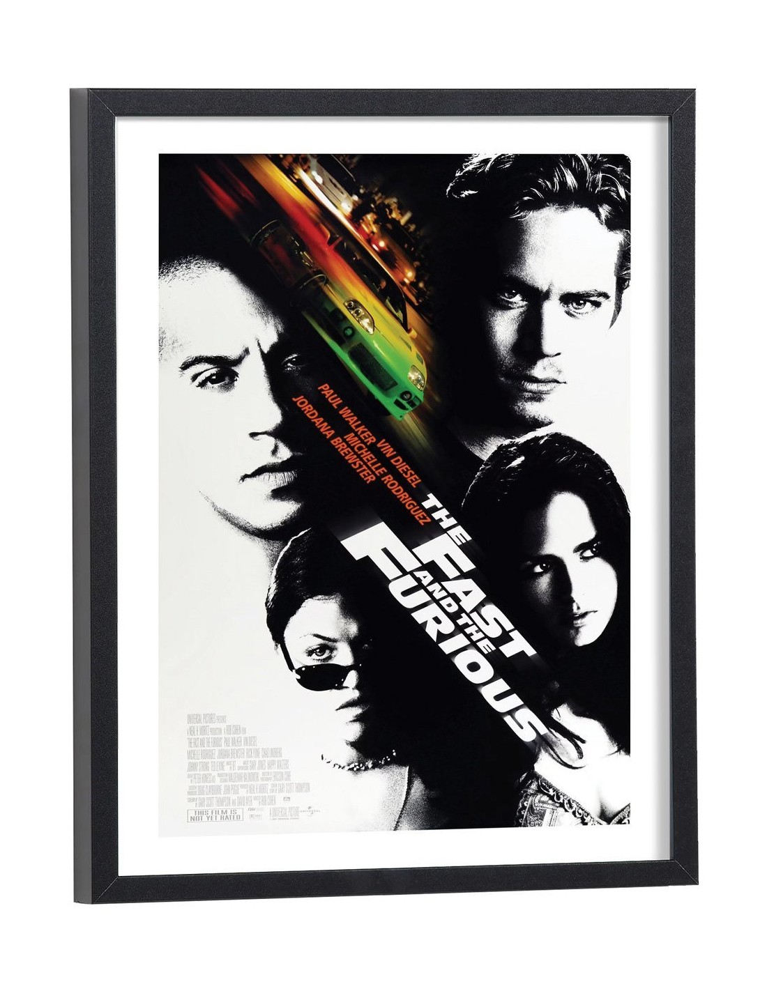 Affiche du film "Fast and furious" sorti au cinéma en 2001. Affiche encadrée avec cadre en bois noir.