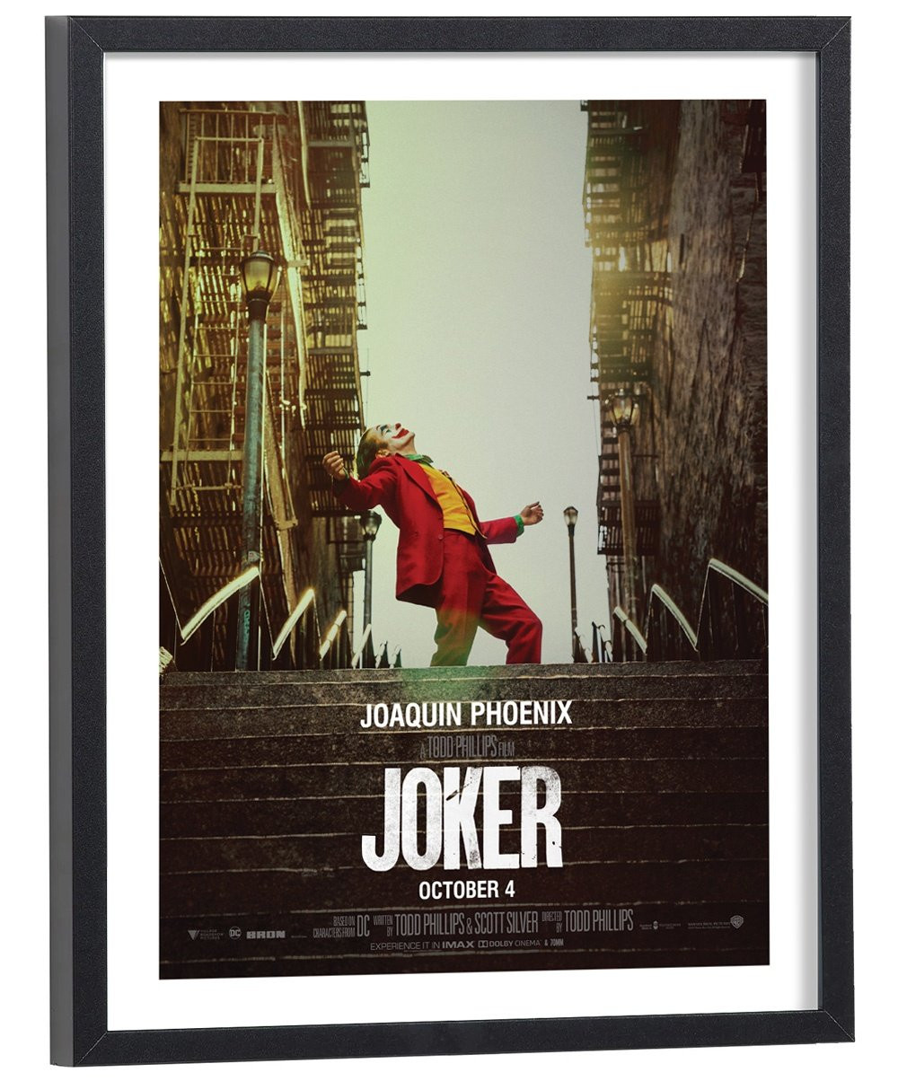 Affiche du film "Joker" sorti au cinéma en 2019. Affiche encadrée avec cadre en bois noir.