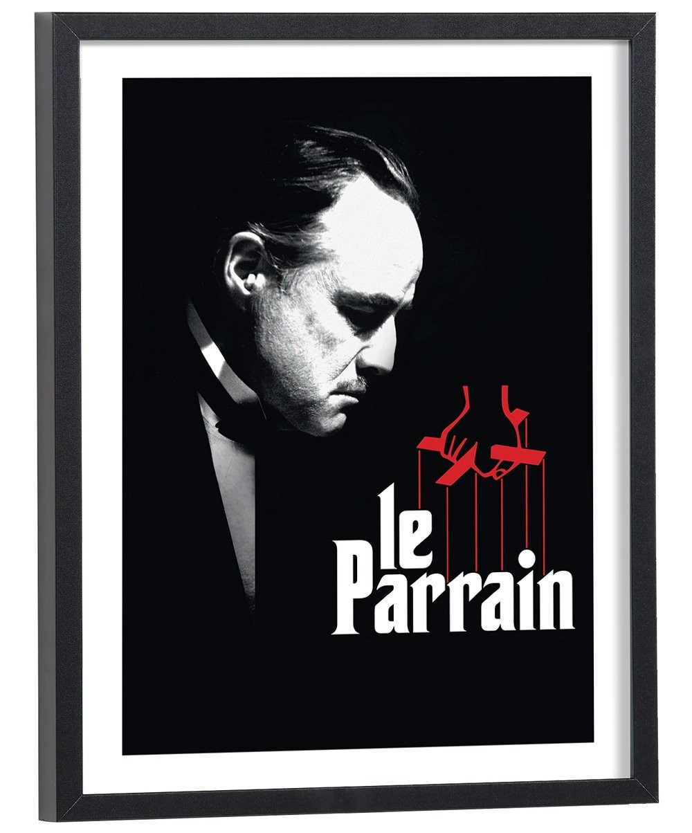 Affiche du film "Le Parrain" avec Al Pacino, sorti au cinéma en 1972, réalisé par Francis Ford Coppola. Affiche encadrée avec cadre en bois noir.