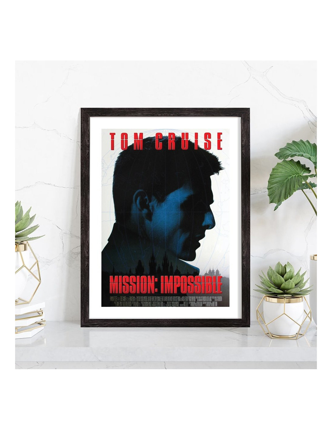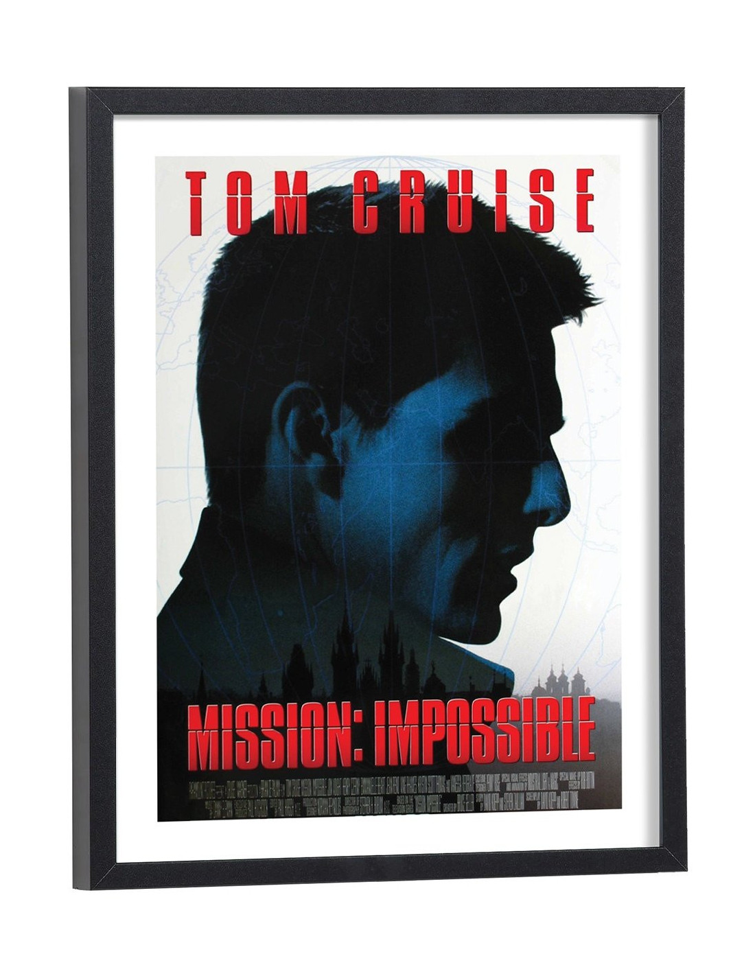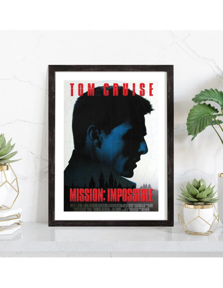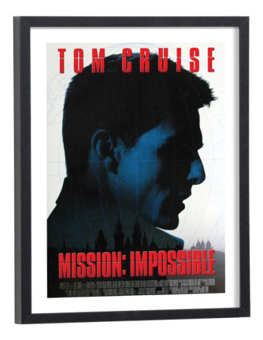 Affiche du film "Mission Impossible" avec Tom Cruise sorti au cinéma en 196, réalisé par Brian De Palma. Affiche encadrée avec cadre en bois noir.