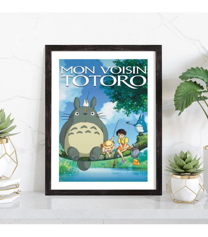 Affiche du film "Mon voisin Totoro" film d'animation japonais réalisé par Hayao Miyazaki . Affiche encadrée avec cadre en bois noir.