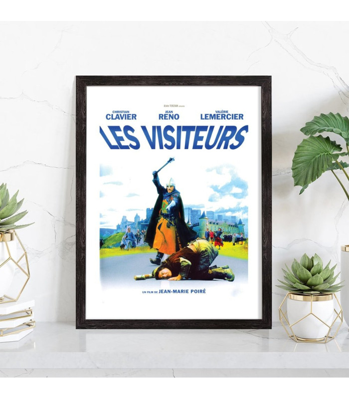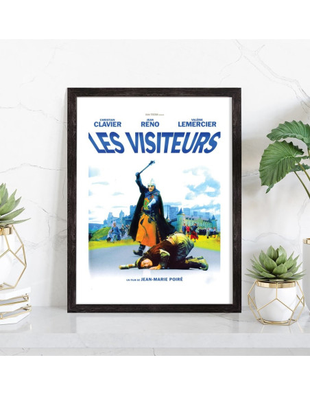 Affiche du film "Les visiteurs". Affiche encadrée avec cadre en bois noir.