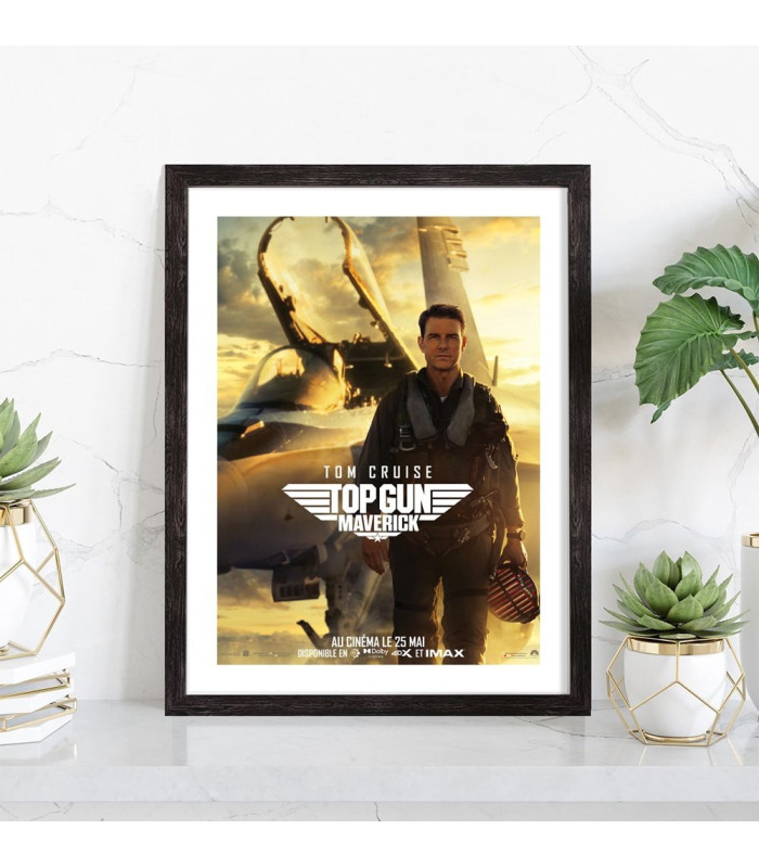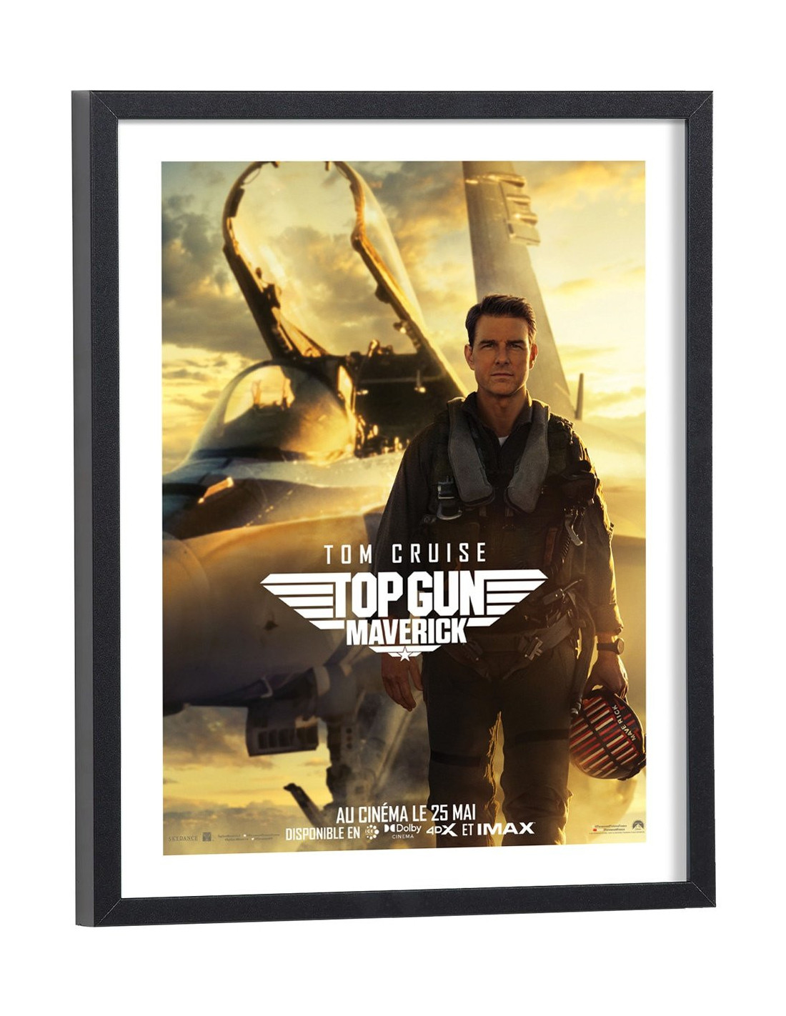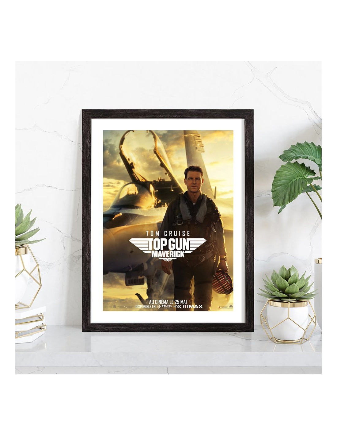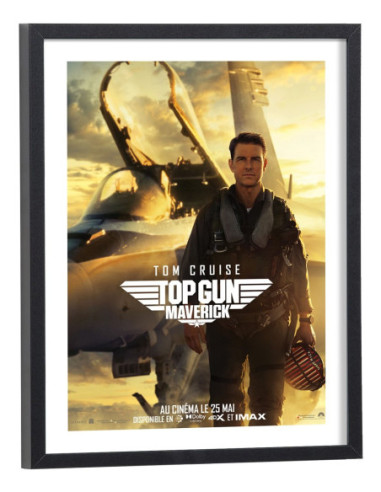 Affiche du film "Top Gun Maverick". Affiche encadrée avec cadre en bois noir.
