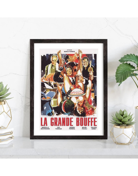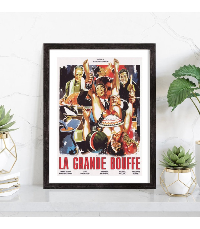 Affiche du film "La grande bouffe". Affiche encadrée avec cadre en bois noir.