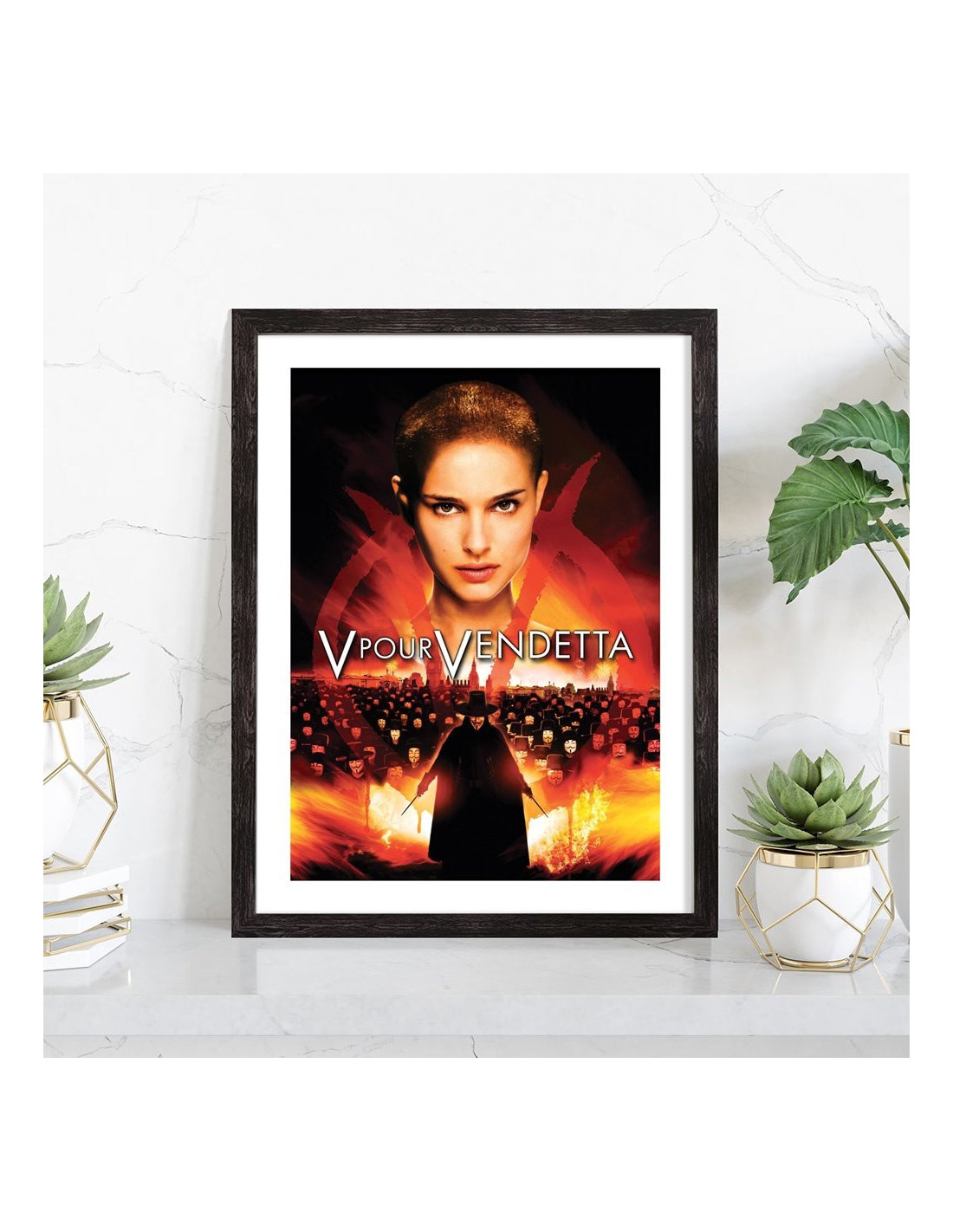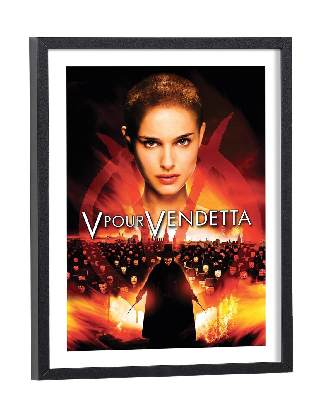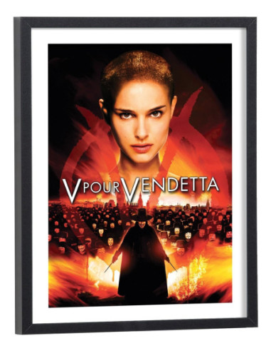 Affiche du film "V comme Vendetta". Affiche encadrée avec cadre en bois noir.
