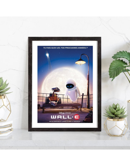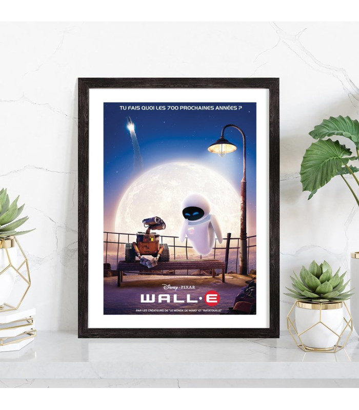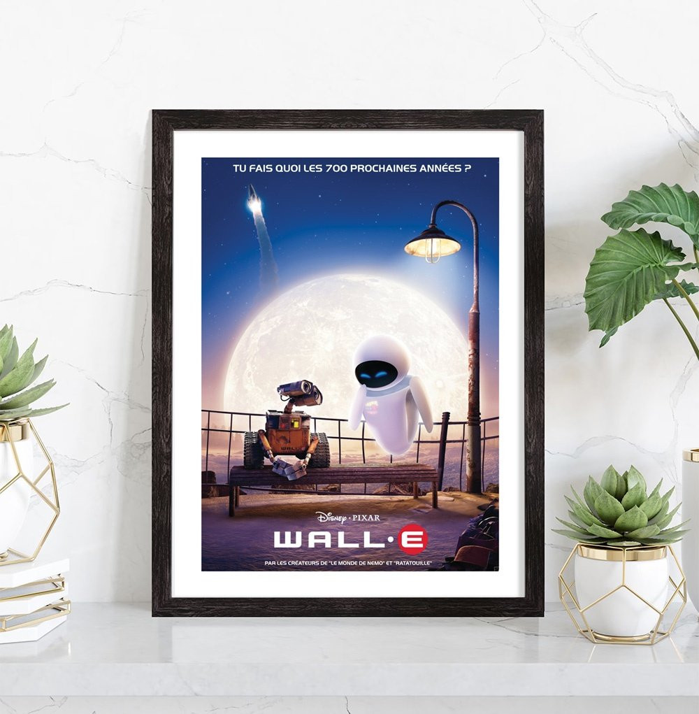 Affiche du film "WALL-E" des studios Disney Pixar. Affiche encadrée avec cadre en bois noir.