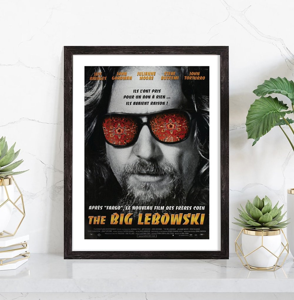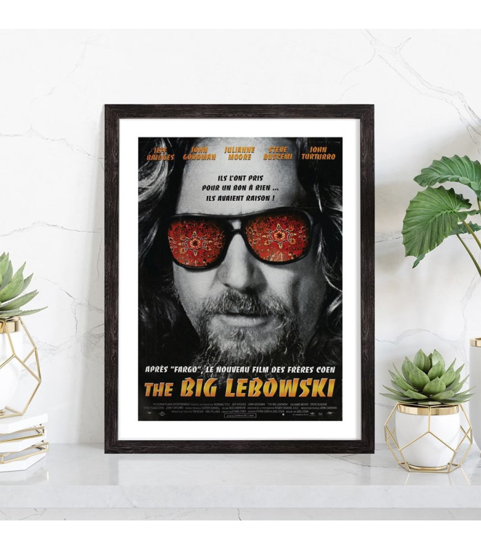 Affiche du film "The Big Lebowski". Affiche encadrée avec cadre en bois noir.