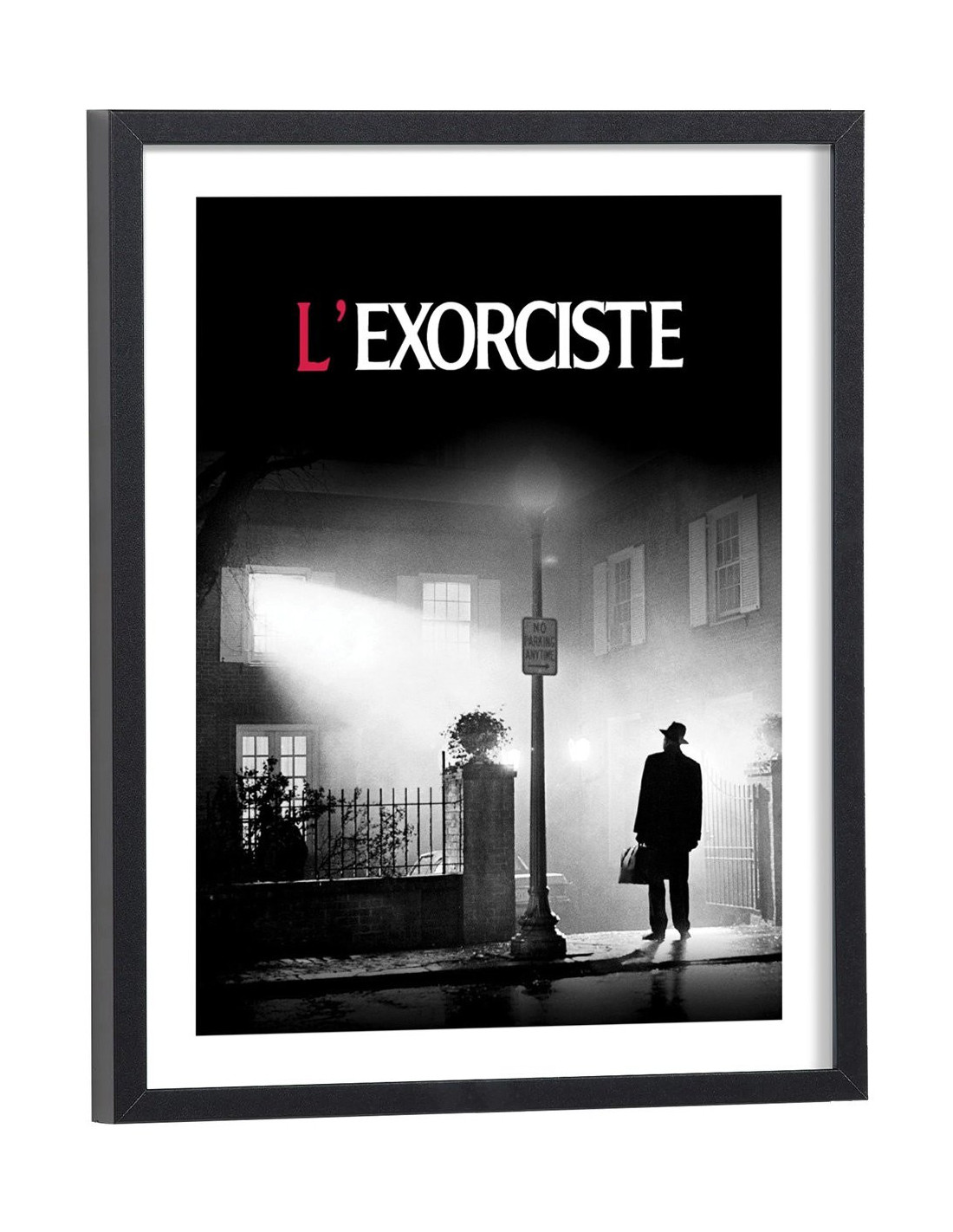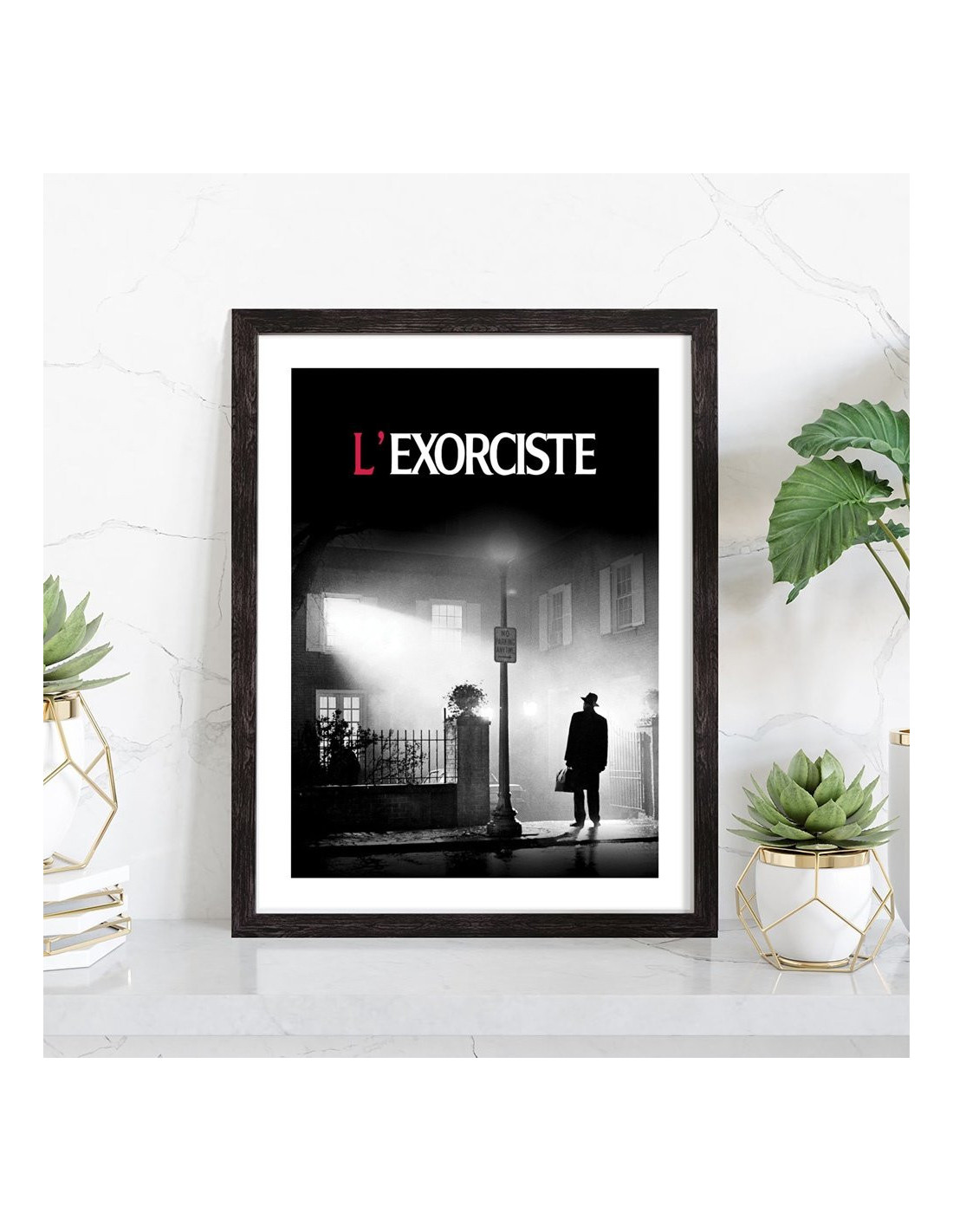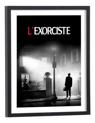 Affiche du film d'horreur "l'Exorciste". Affiche encadrée avec cadre en bois noir.
