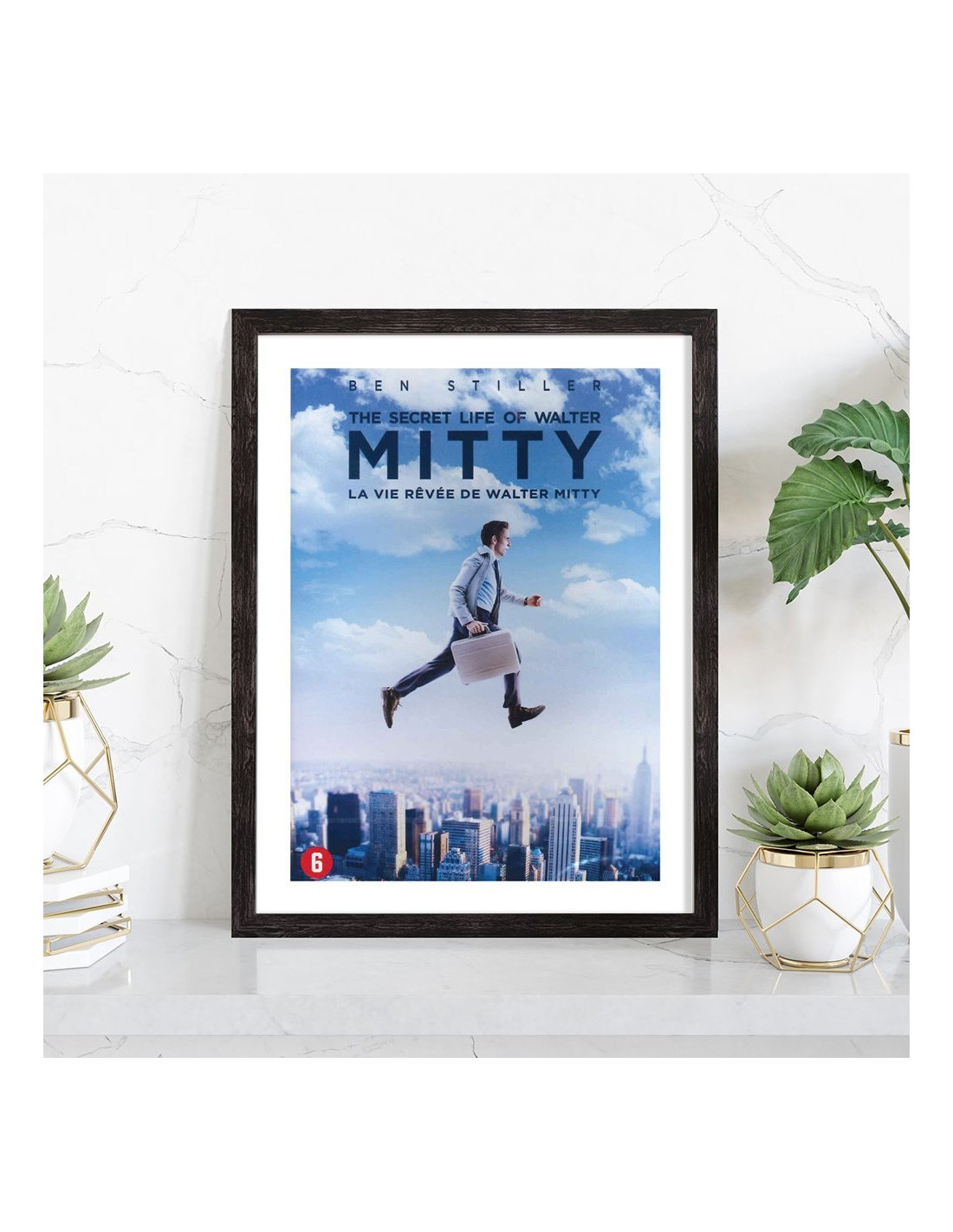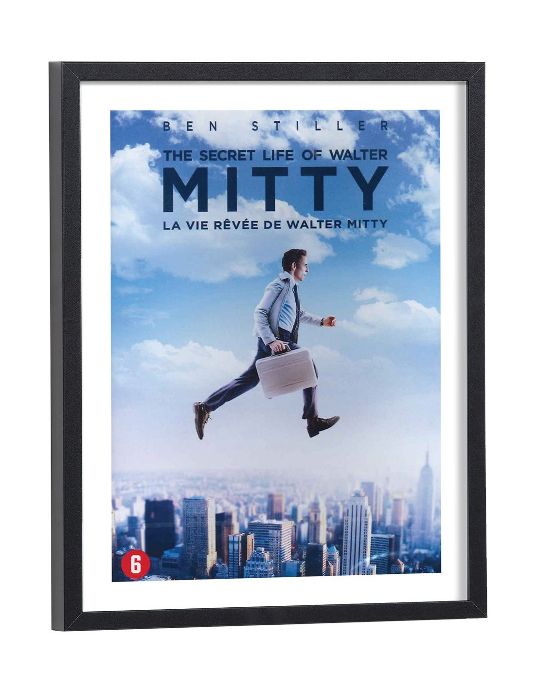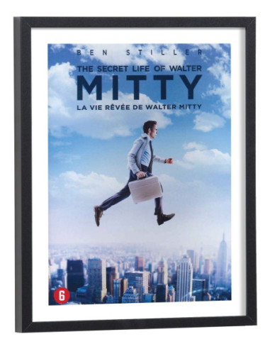 Affiche du film "La vie rêvée de Walter Mitty". Affiche encadrée avec cadre en bois noir.
