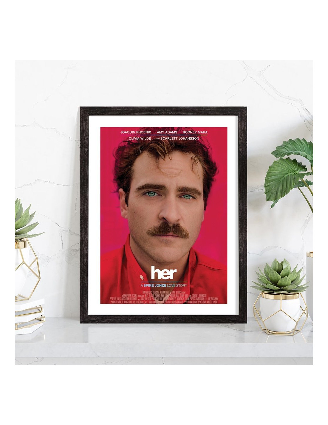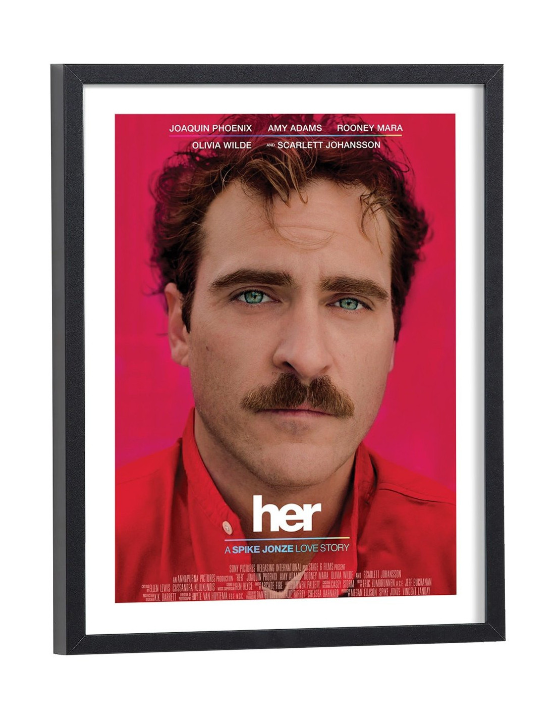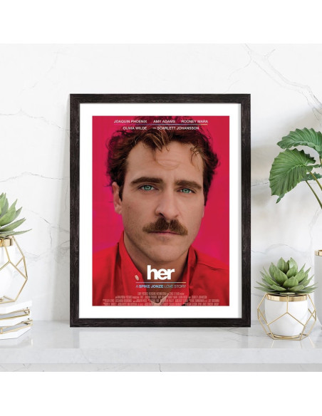 Affiche du film "Her". Affiche encadrée avec cadre en bois noir.