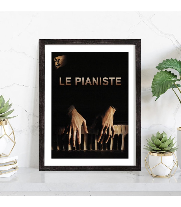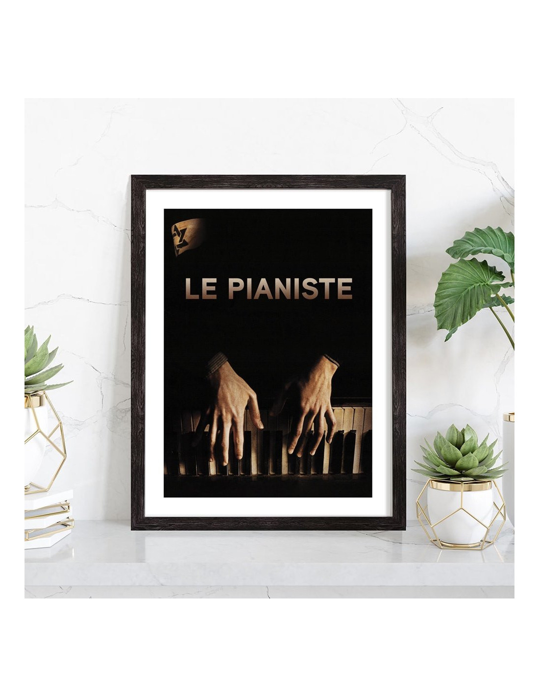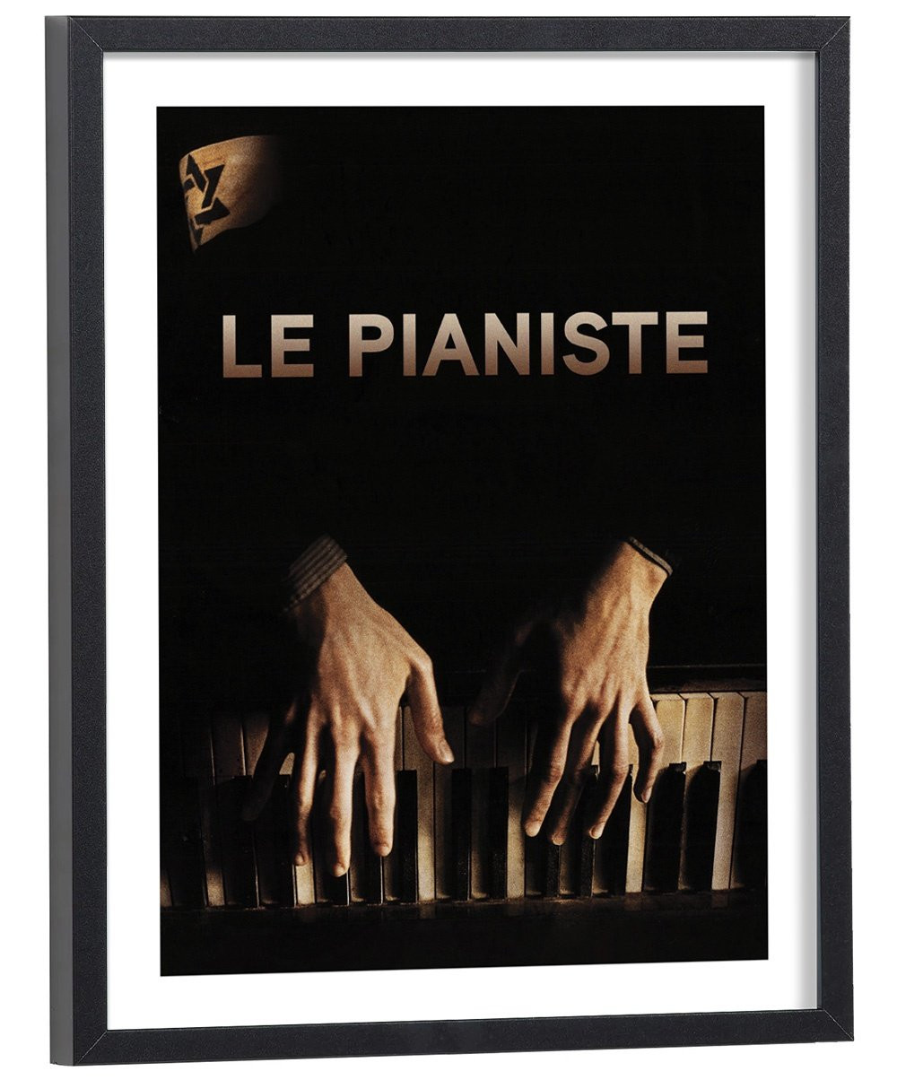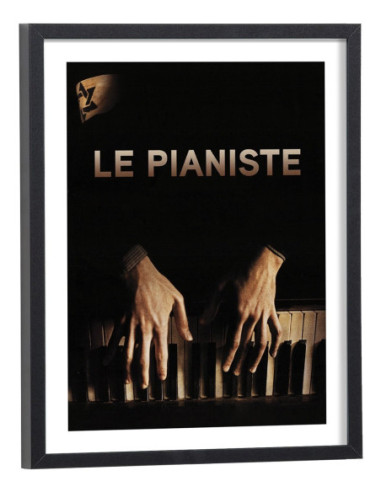 Affiche du film "Le pianiste". Affiche encadrée avec cadre en bois noir.