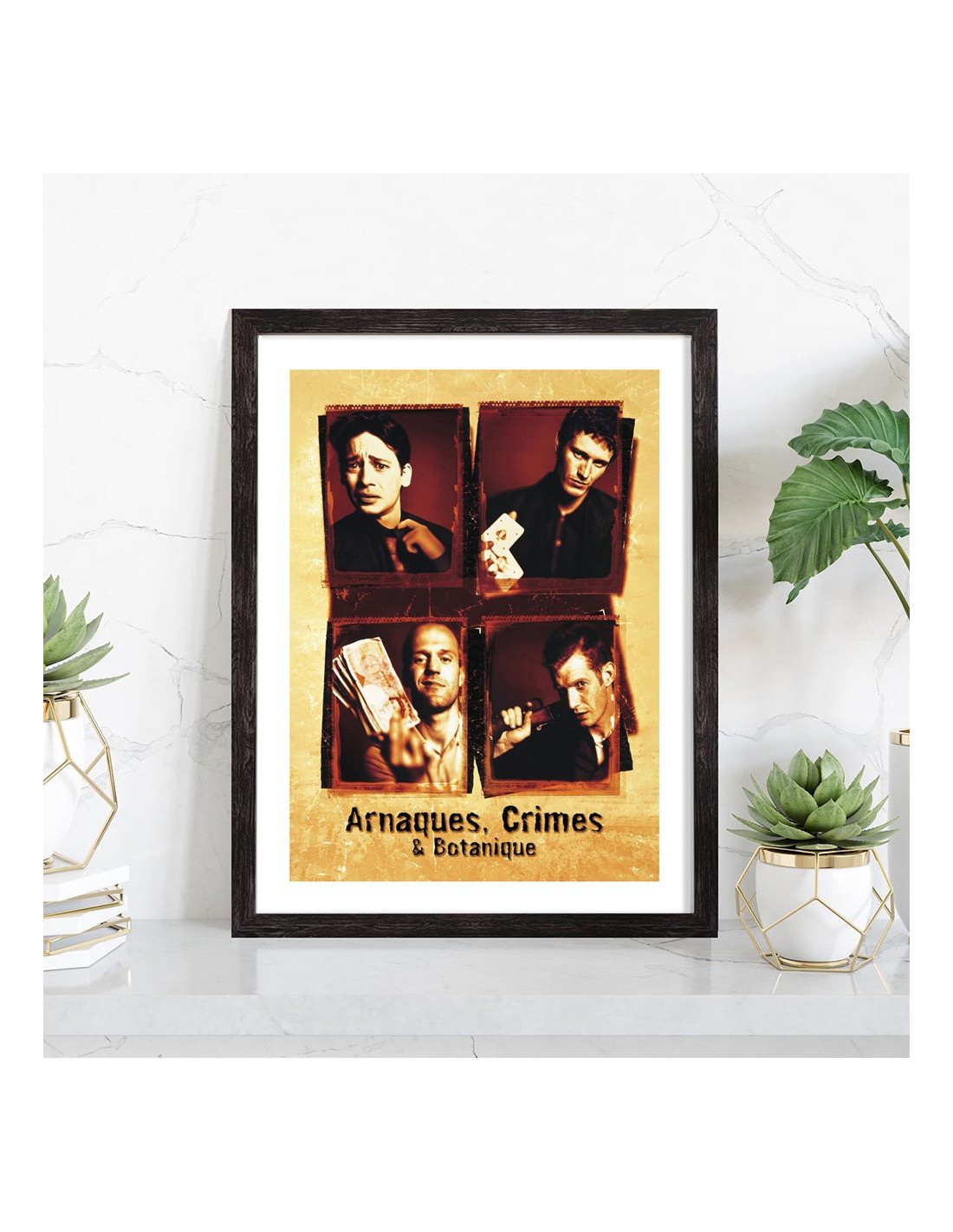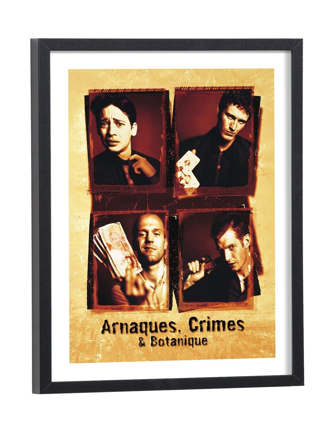 Affiche du film "Arnaques, Crimes et Botanique". Affiche encadrée avec cadre en bois noir.