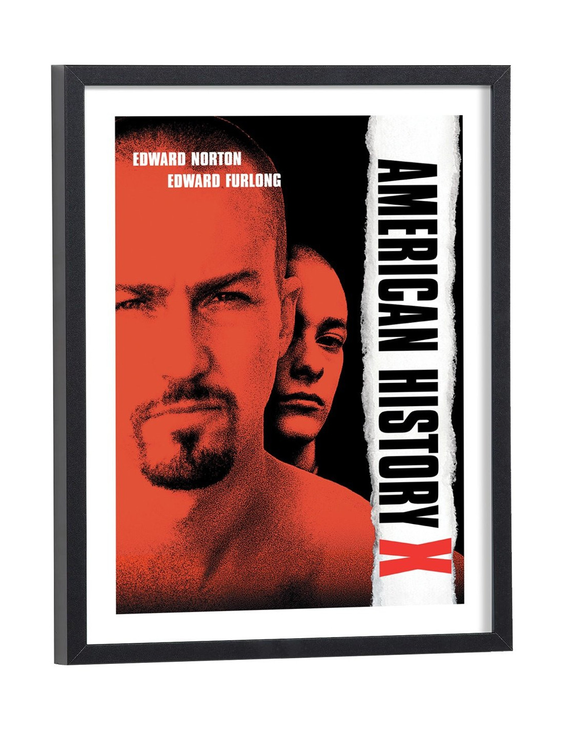 Affiche du film "American History X". Affiche encadrée avec cadre en bois noir.