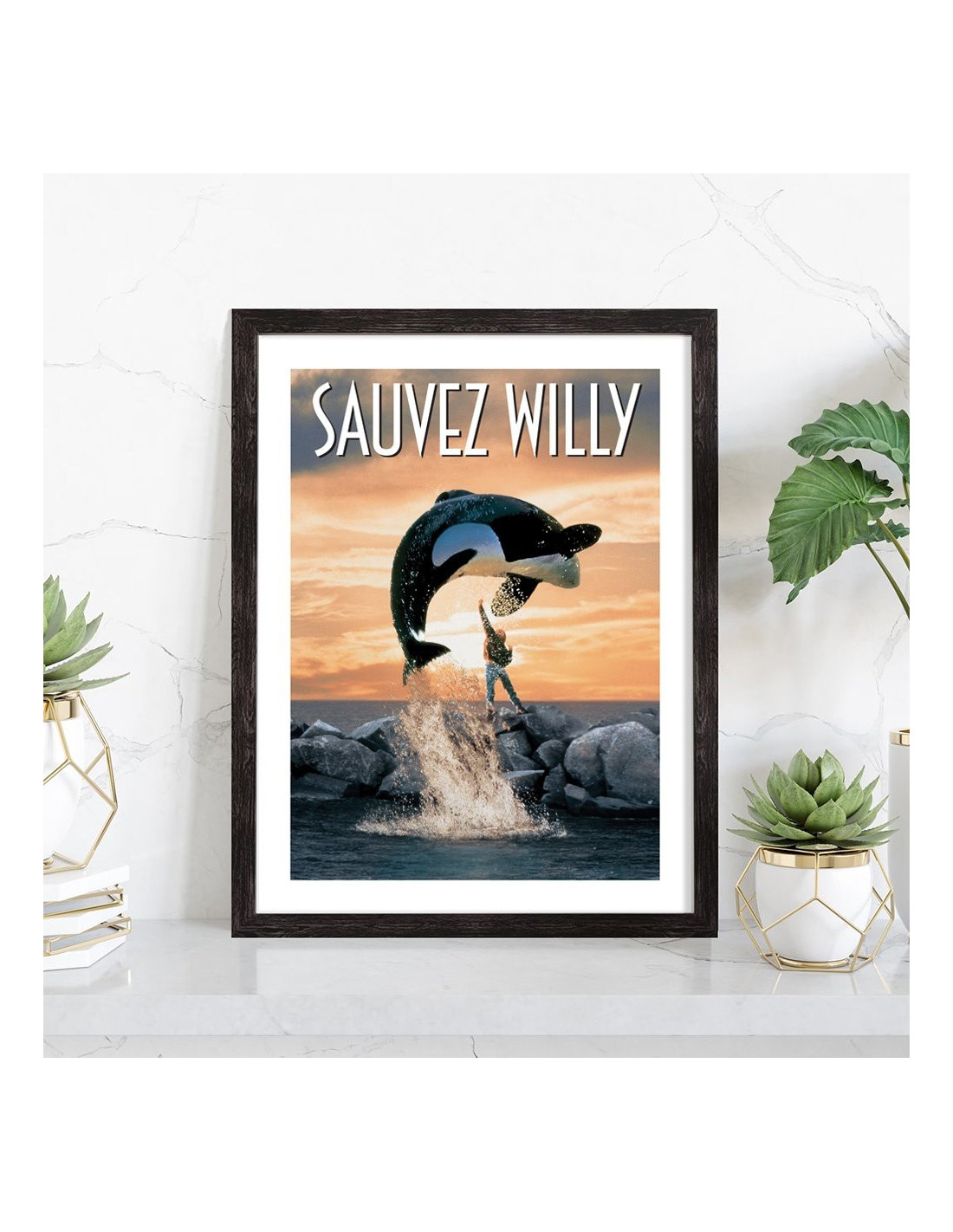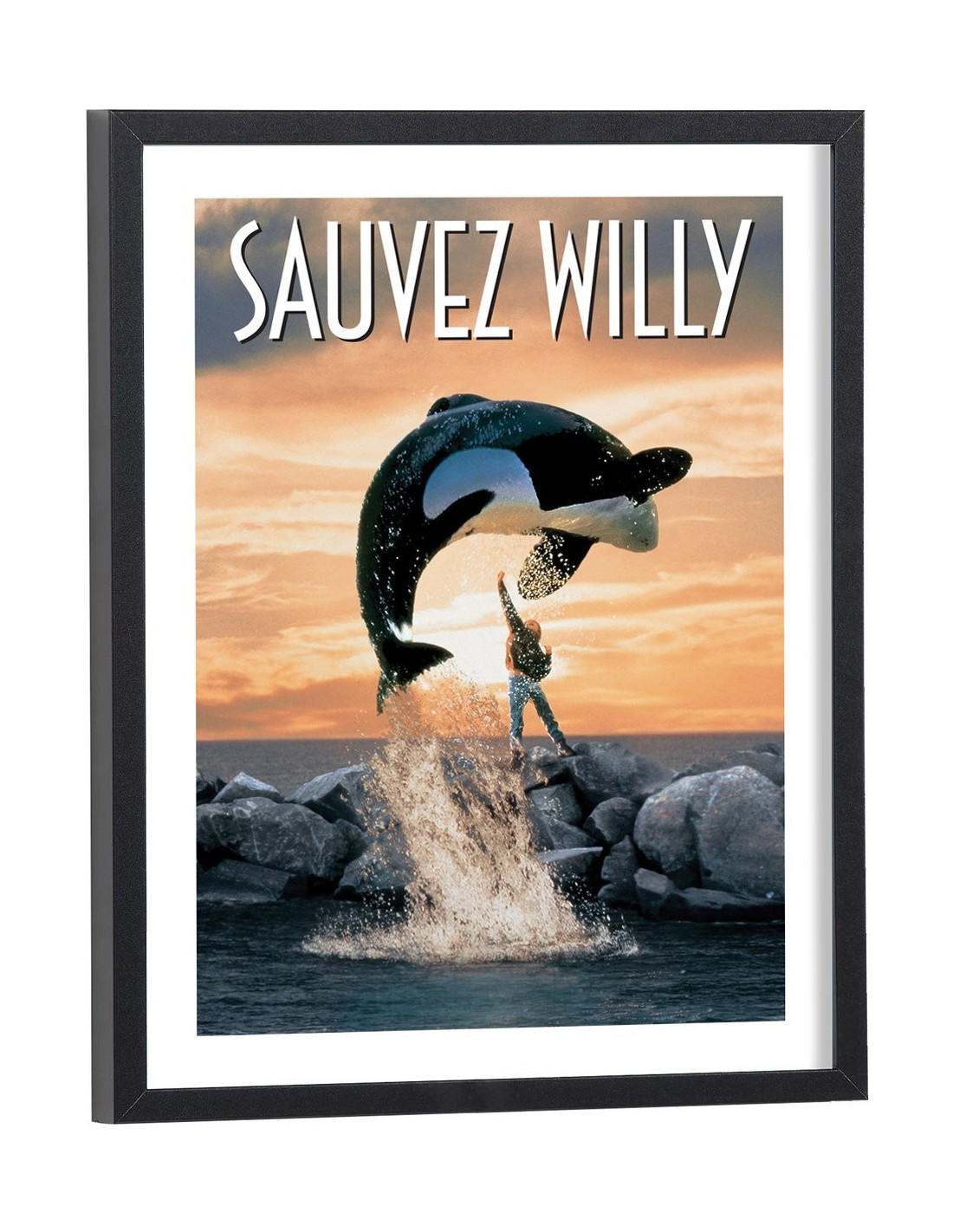 Affiche du film "Un singe en hiver". Affiche encadrée avec cadre en bois noir.