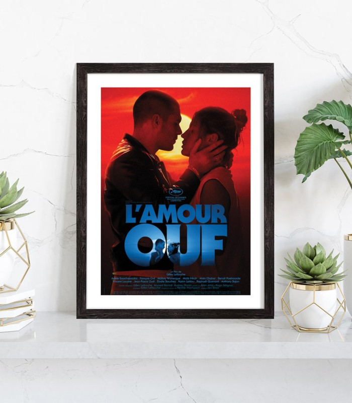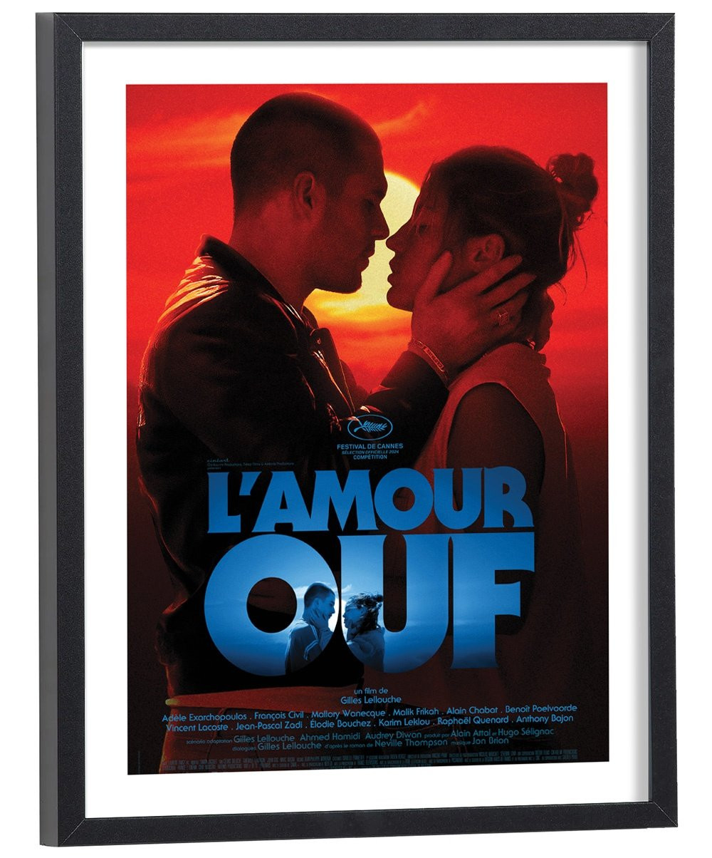 Affiche du film "L'amour ouf". Affiche encadrée avec cadre en bois noir.