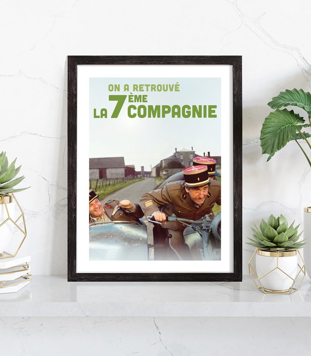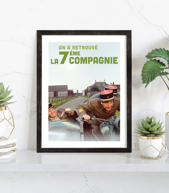 Affiche du film "On a retrouvé la 7ème compagnie". Affiche encadrée avec cadre en bois noir.