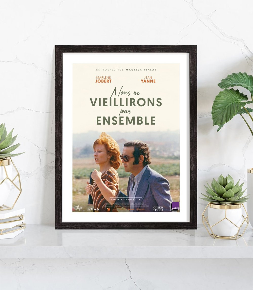 Affiche du film "Nous ne vieillirons pas ensemble". Affiche encadrée avec cadre en bois noir.