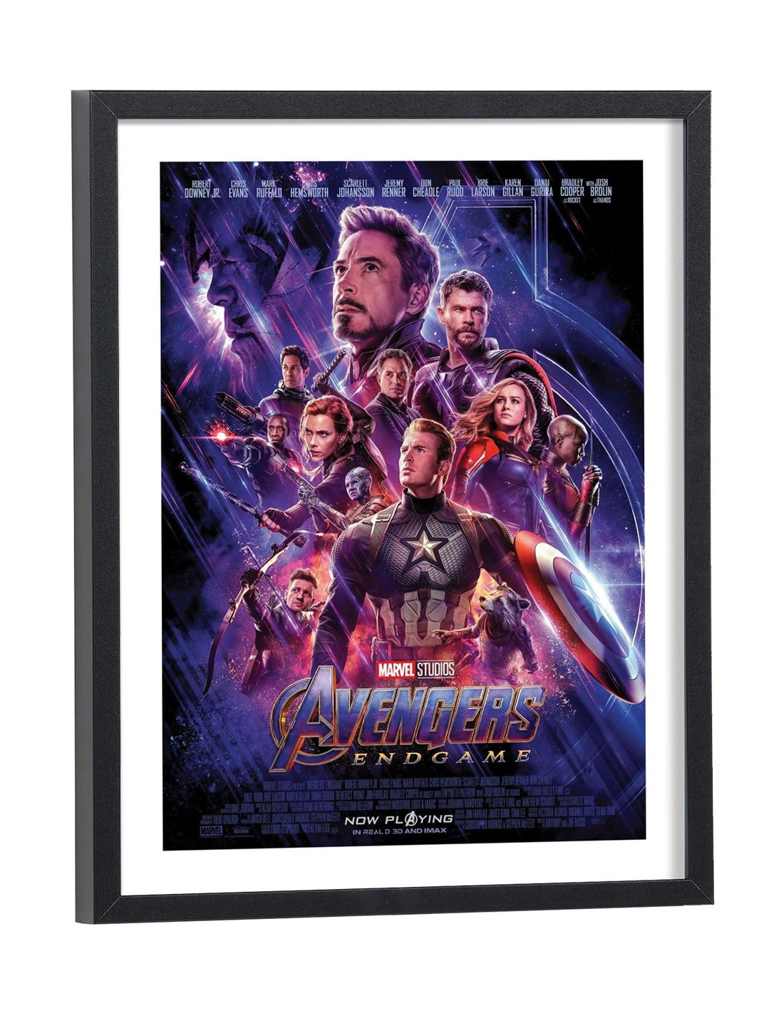 Affiche du film "Avengers Endgame". Affiche encadrée avec cadre en bois noir.