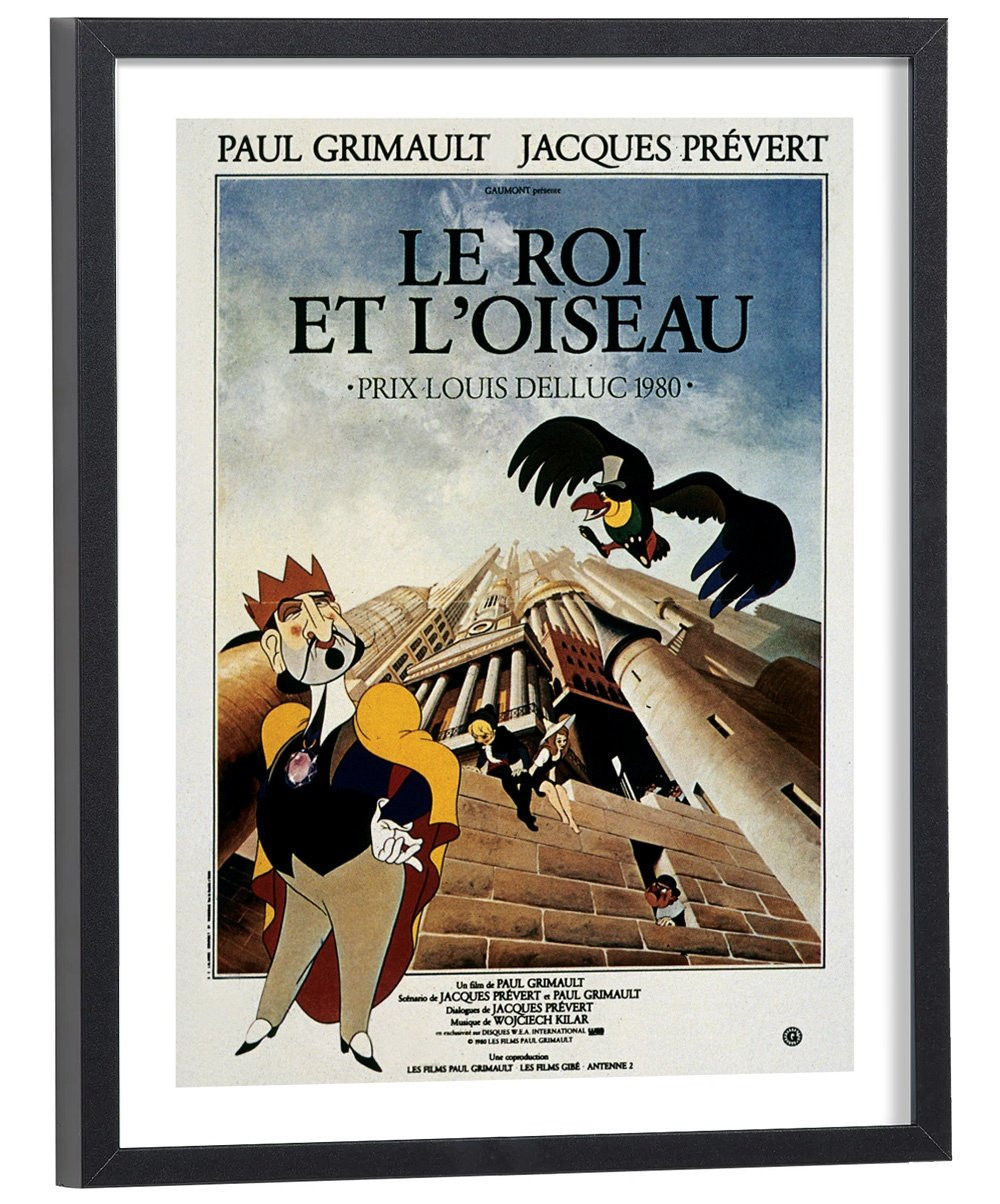 Affiche du film "Le roi et l'oiseau". Affiche encadrée avec cadre en bois noir.