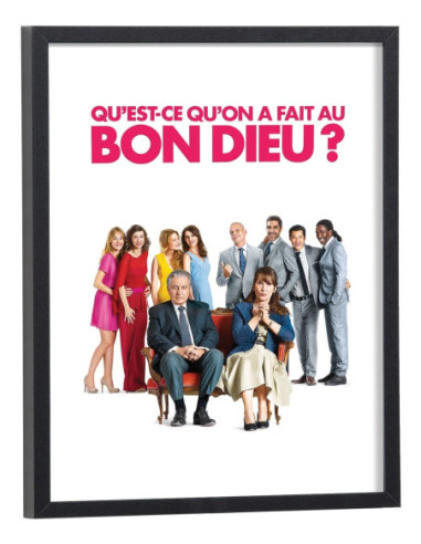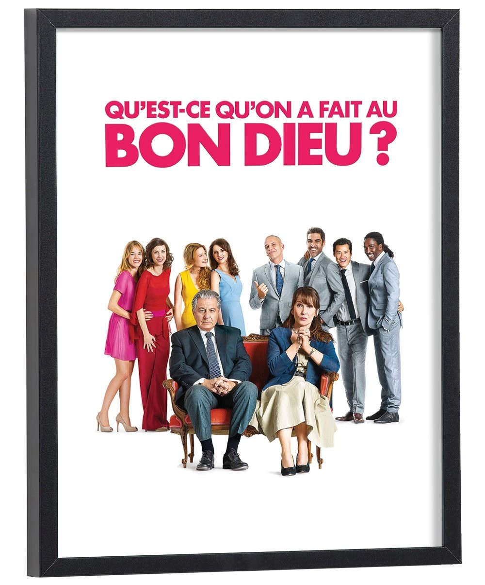 Affiche du film "Qu'est-ce qu'on a fait au Bon Dieu ?". Affiche encadrée avec cadre en bois noir.