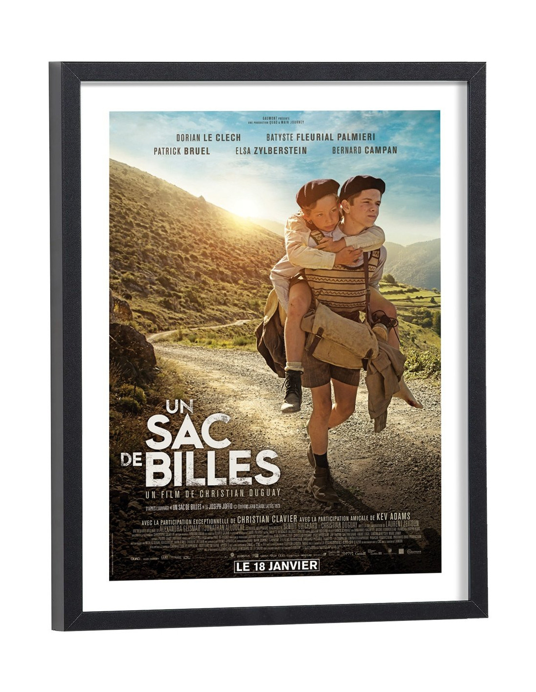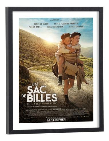 Affiche du film "Un sac de billes". Affiche encadrée avec cadre en bois noir.